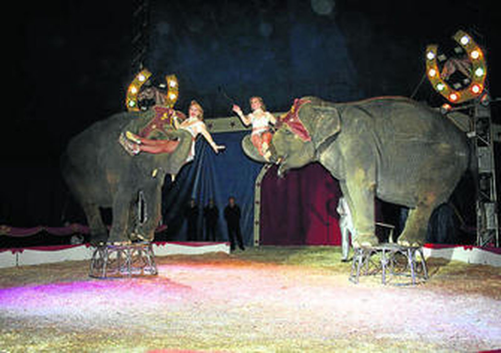 Uno de los grandes momentos lo protagonizan Miss Esmeralda y su hija, galopando a lomos de dos elefantes asiáticos. Caballos y ponys noruegos, además de leones marinos, completan los números animales, finalizando el espectáculo la gran familia del circo con un número musical, habiendo conseguido, lo más importante: hacer disfrutar al público.