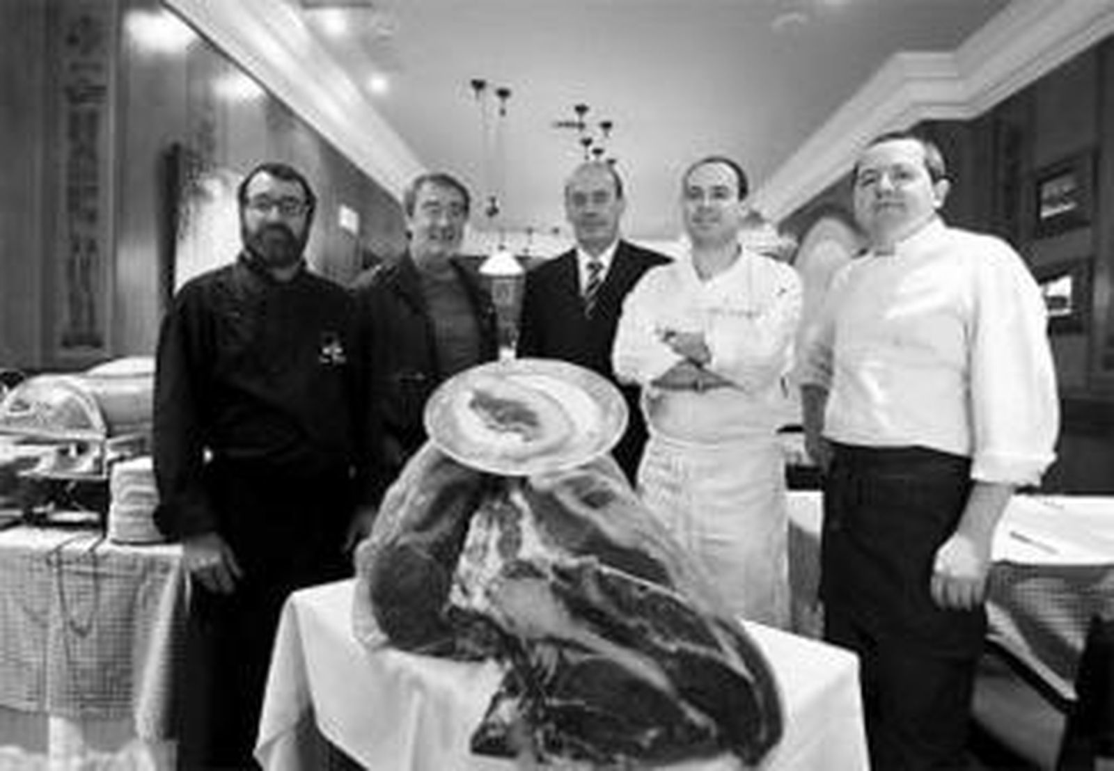 Dos costilleros que arrojan un peso de 120 kilos serán la principal materia prima de las IV Jornadas de Carne Cántabra que desde ayer y hasta el domingo se celebran en el restaurante 'Altamira', del hotel 'Los Jándalos'. La presentación de dichas jornadas contó con la presencia de todas aquellas personas que están relacionadas con dichas piezas. Fue el caso del proveedor, Germán Mendioroz Lavín; el maestro asador Juan Valdés (del restaurante 'La Castillería' de Vejer); el chef cántabro Luis Antonio Rivas, chef y propietario de 'El Limonar de Soano' y diseñador del menú en el que se incluirán dichas piezas; Javier Domínguez, maitre del hotel 'Los Jándalos', que las servirá, y Domingo Astorga, jefe de cocina del referido hotel, que será el encargado de transmitir los referidos conceptos a los comensales. Junto a ellos también estuvo el gastrónomo cántabro José María Rodríguez Linares.
