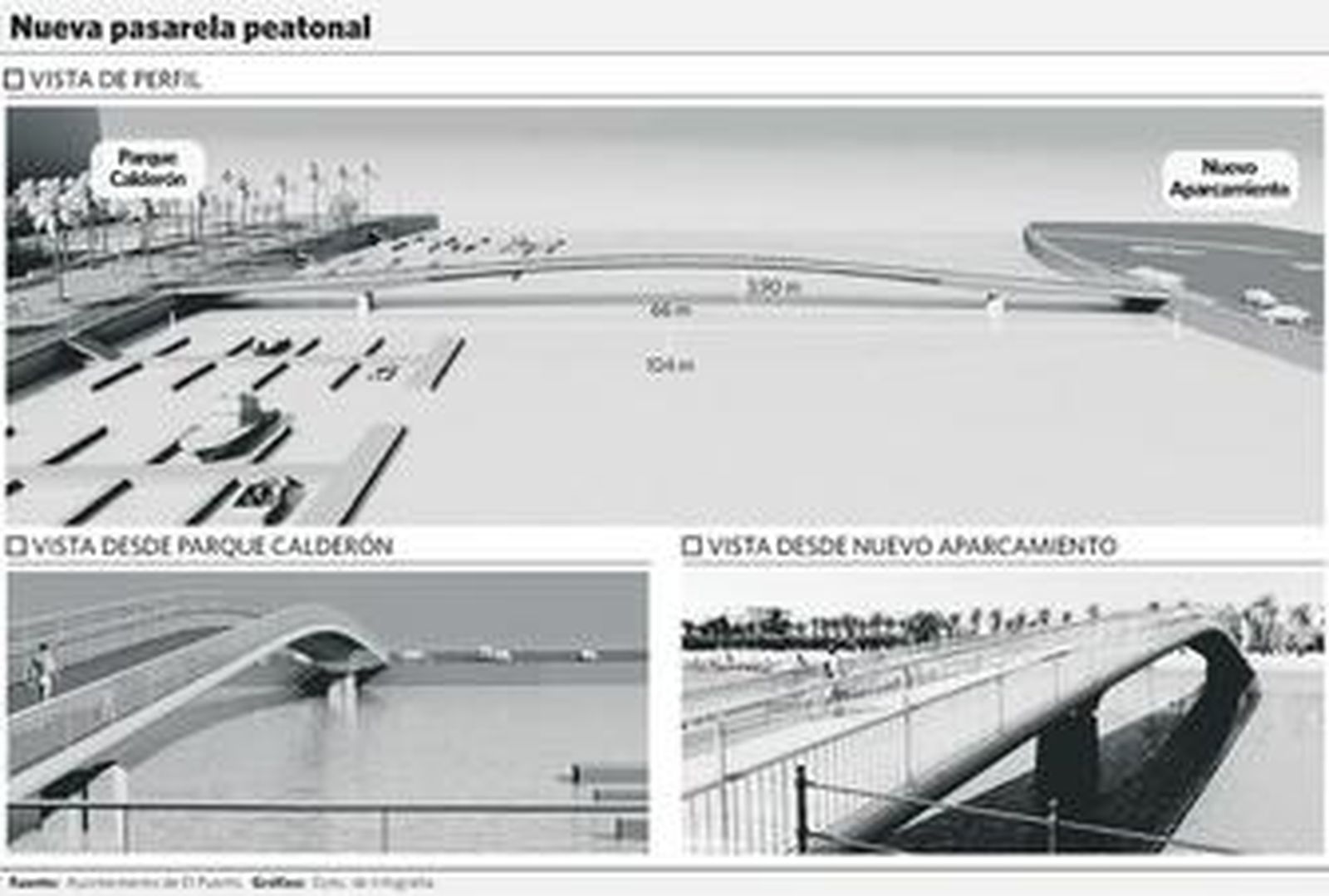 Se trata de la primera de las dos pasarelas peatonales que está previsto construir sobre el río Guadalete. La segunda pasarela se construirá a la altura del muelle del vapor y correrá a cargo de quien obtenga el desarrollo previsto por la Autoridad Portuaria para los terrenos de la margen izquierda.