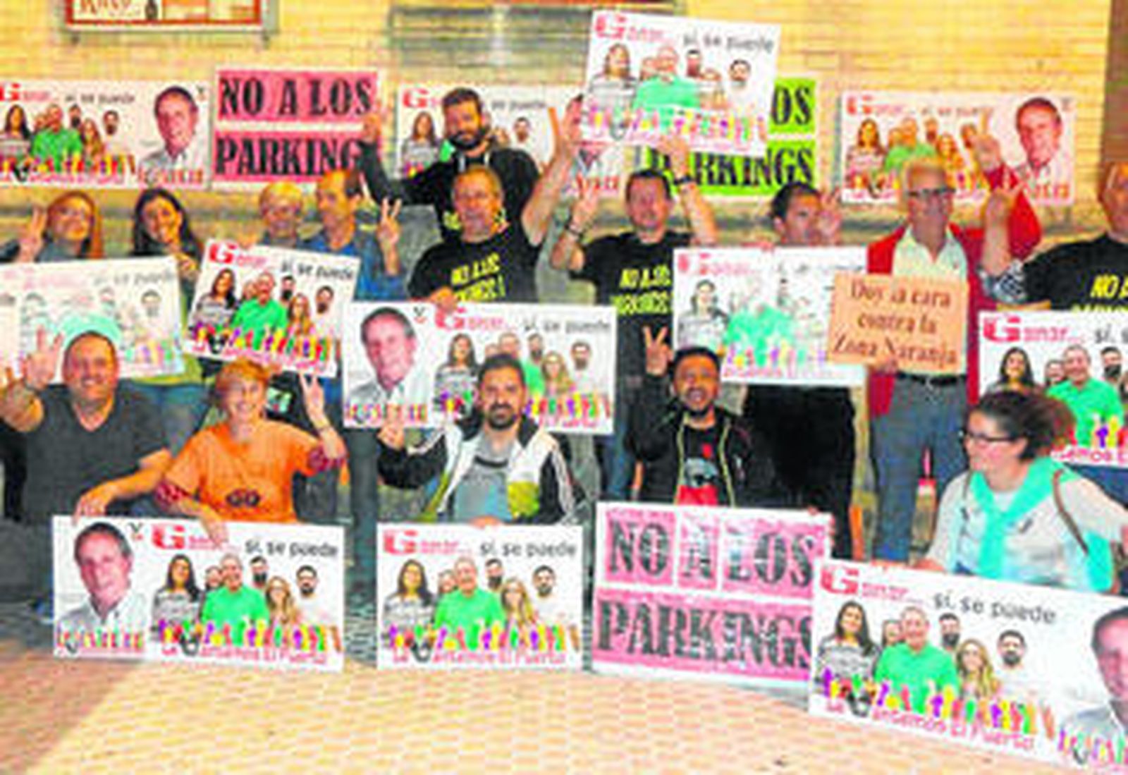 Además de los carteles electorales que se usarán durante la campaña se exhibieron carteles en donde se podía leer 'No a los Parkings' y 'Doy la cara contra la Zona Naranja', lemas que han resonado bastante entre los portuenses durante el último año.