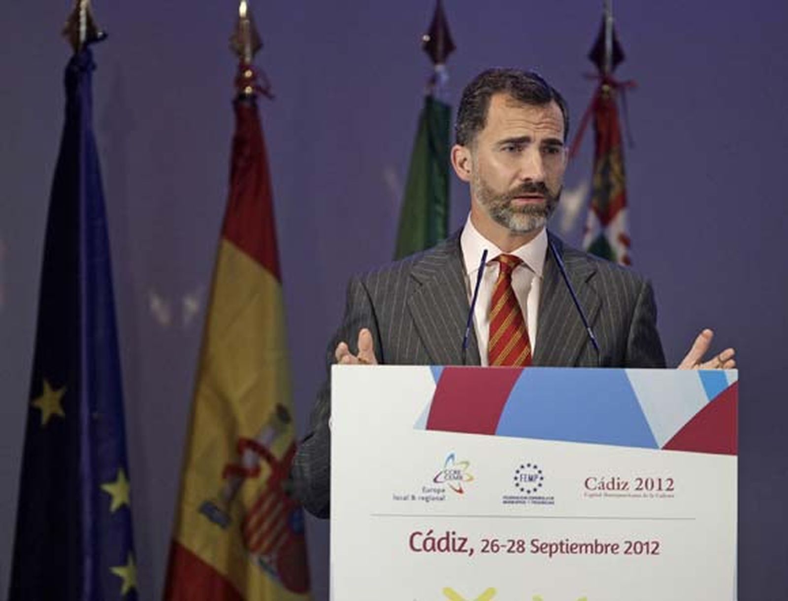 Tras agradecer la implicación de las diferentes administraciones y especialmente el empeño de la alcaldesa de Cádiz, Teófila Martínez, para que la ciudad fuese sede de la reunión del CEMR, el Príncipe recordó que "hace solo dos siglos" se promulgó en esta tierra "la primera Constitución intercontinental de la Historia" para resaltar los vínculos entre Europa e Iberoamérica, unos vínculos que las administraciones "deben fortalecer" en una cita como esta. Don Felipe aludió también a la historia del municipalismo para entender "su sólida imbricación e influencia en el desarrollo posterior de nuestras administraciones y sociedades", porque "el mundo local forma parte de la más profunda identidad de los pueblos europeos, ha contribuido a preservar sus tradiciones y ha propiciado los intercambios culturales y económicos así como el proceso modernizador vivido en las naciones de Europa hasta conformar su realidad presente".