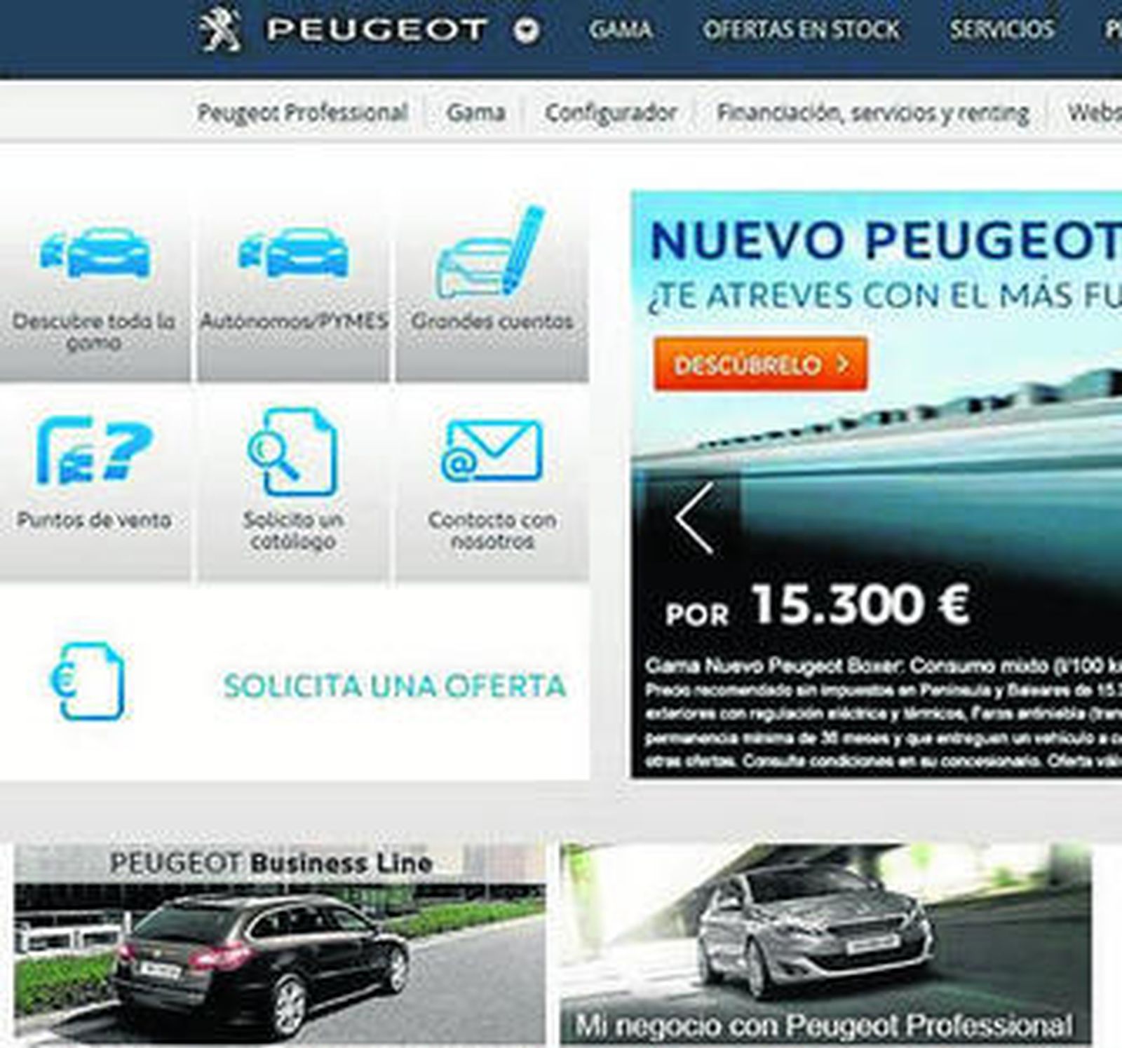 Peugeot España estrena su nueva web de empresas. Esta página responde a los códigos estéticos digitales de la marca del león y facilita una navegación natural e intuitiva. En este nuevo espacio, el nuevo Peugeot Boxer está disponible por 15.300 euros sin impuestos o desde 447 euros al mes más IVA con Peugeot Renting. El acceso se realiza a través de la dirección empresas.peugeot.es o directamente en peugeot.es, en la categoría 'Profesional' situada en la cabecera superior.