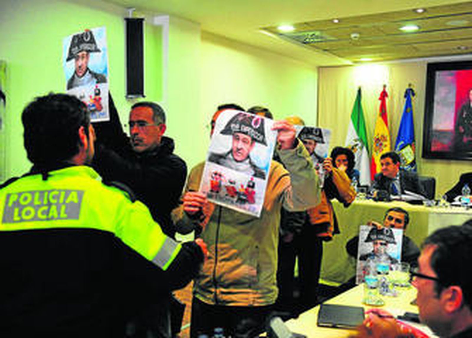 Las protestas de Navantia caldearon ayer el pleno hasta el punto de que la Policía Local se vio obligada a desalojar de la sala a un grupo de trabajadores después de que estos irrumpieran al final del debate -ya a primera hora de la tarde- para recriminar al alcalde su falta de apoyo a las reivindicaciones de la plantilla en demanda de una mayor carga de trabajo que garantice el futuro de la factoría.