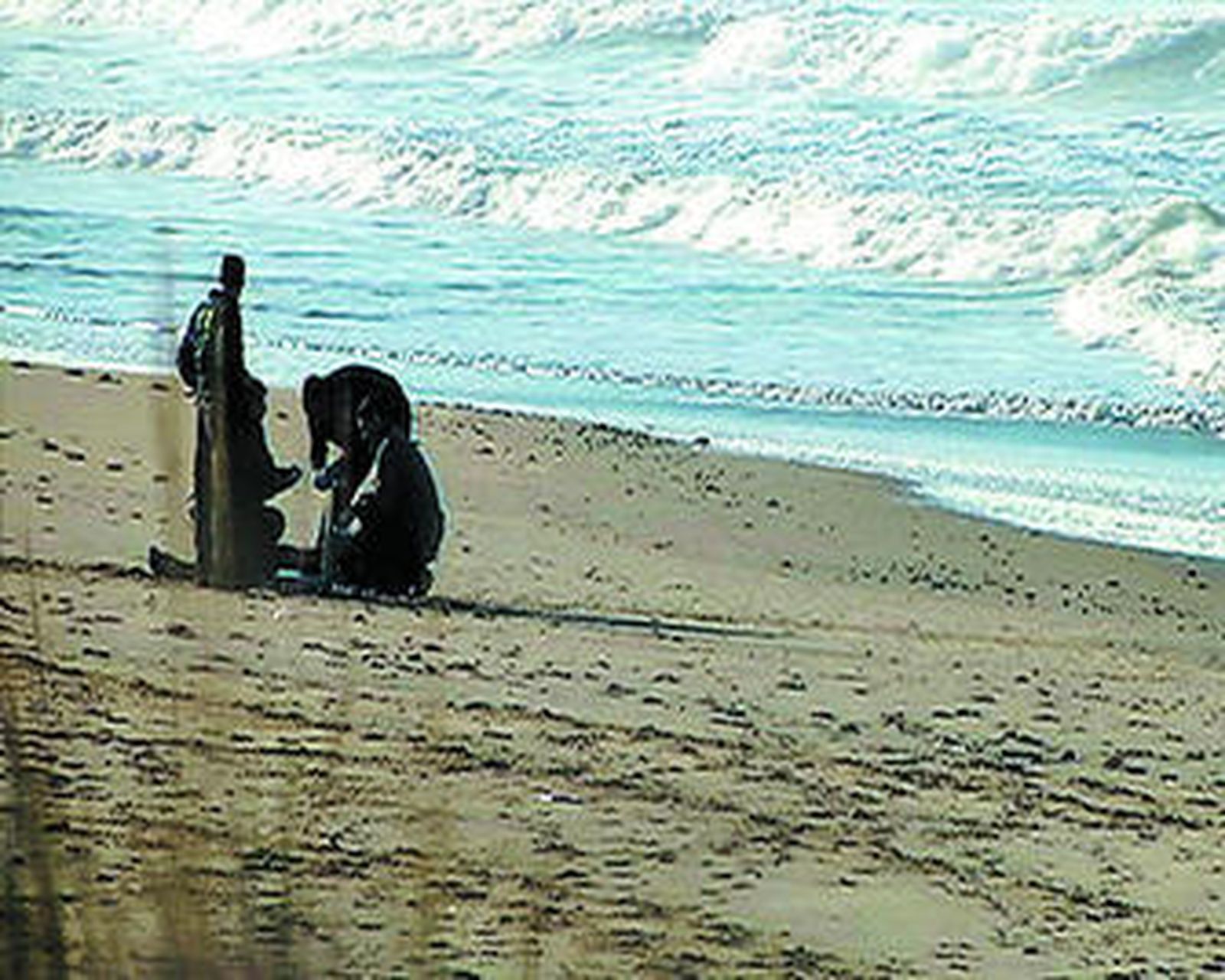 Los rastreadores de los fardos aún se dejaban ver ayer por La Barrosa 1.500 euros por un kilo de droga
