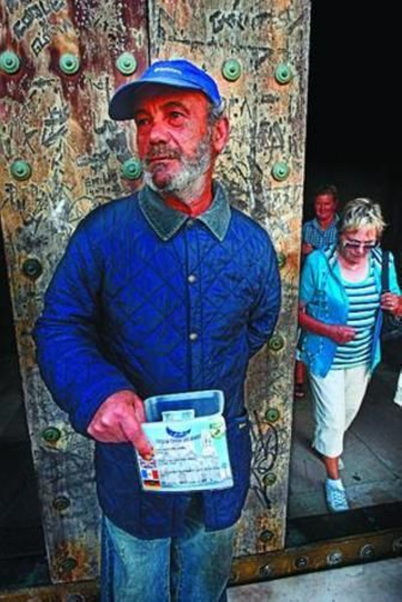 Su relato: "Mi padre era maestro de escuela y yo quería ser cura. Tuve una buena infancia, una infancia normal, pero mi padre no quería que yo fuera cura y no me hice cura. Pasé por el servicio militar en Alcalá de Henares y lo pasé bien. Era paracaidista y aprendí a caer. El día más feliz de mi vida fue el que pasé con un viejo compañero, un viejo paracaidista al que encontré de casualidad y hablamos mucho de aquellos años y de lo que hacíamos. También fui feliz el día que me casé. Me casé con una mujer a la que quería y trabajé en artes gráficas y tuve dos hijos con ella. De repente, todo se acabó, pero se acabó bien, sin violencia, yo no soy violento. Y me fui. Busqué trabajo, recogí peras, fresas y manzanas, pero mi espalda ya no aguanta. Fui de aquí para allá, de Gerona a Valencia, de Valencia a Murcia. Conozco toda España y hace dos años acabé aquí y vi que no había nadie en la Catedral".