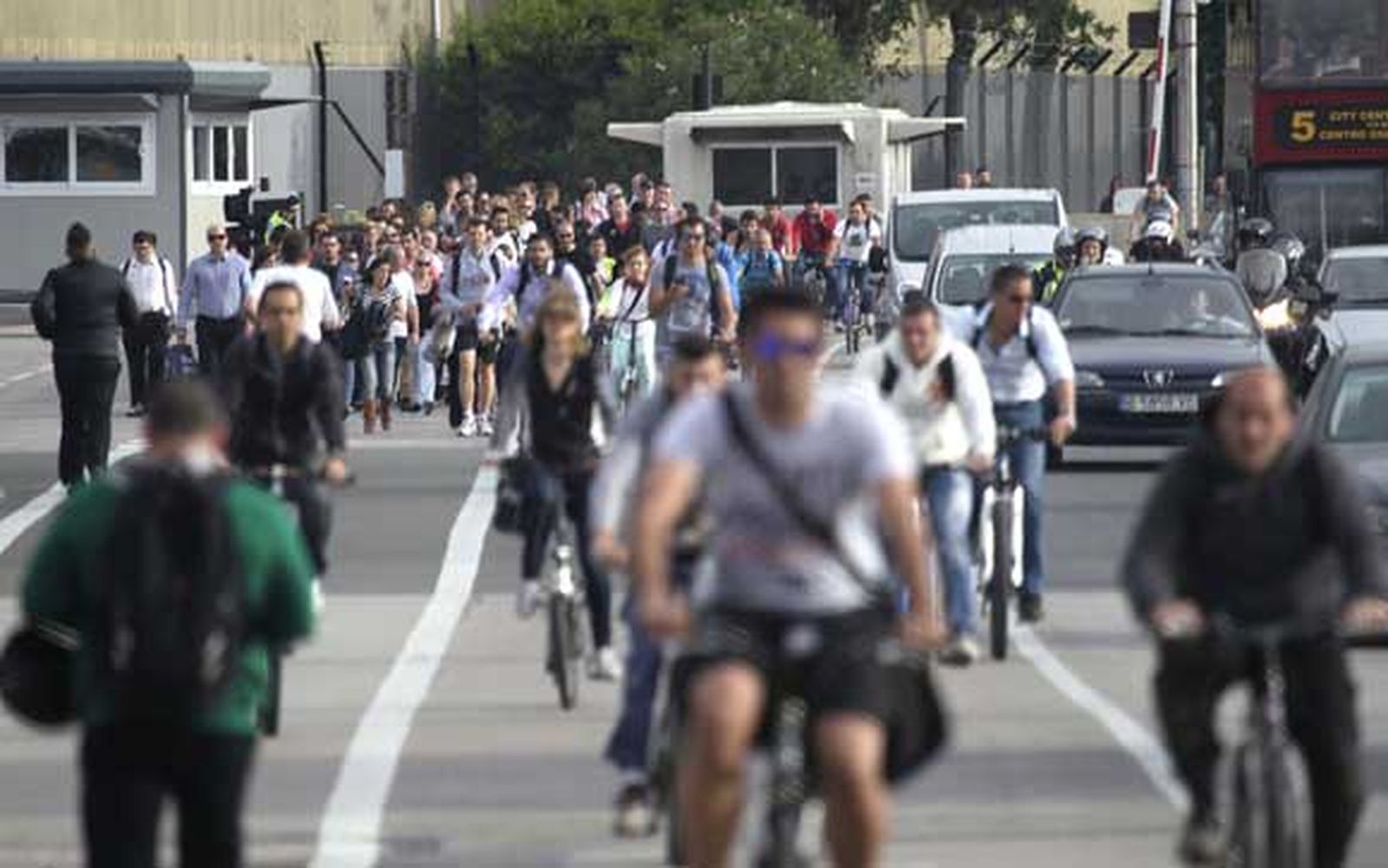Los trabajadores españoles en la colonia cuestionan la eficacia de la frontera inteligente. Los retrasos, de hasta 45 minutos, afectan a peatones y tráfico rodado.