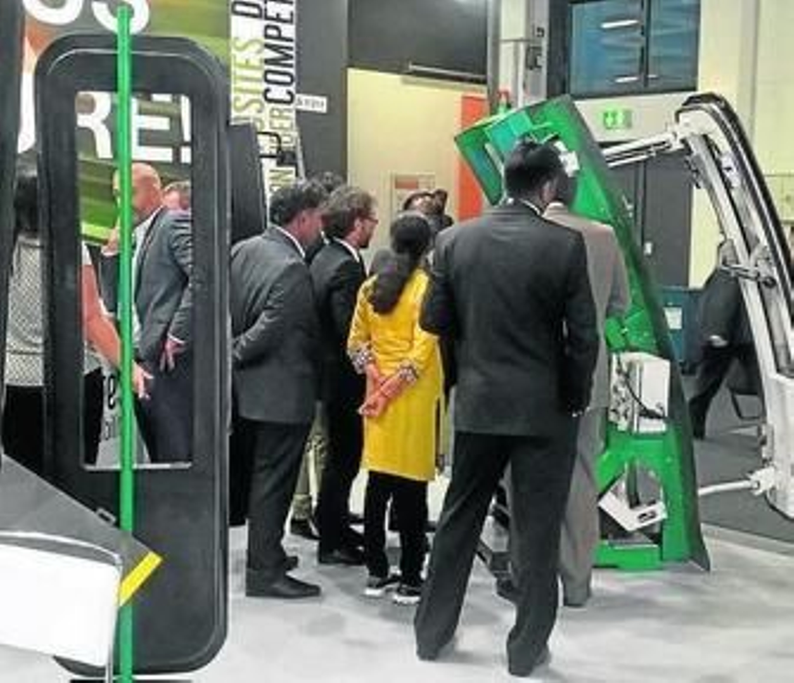 La empresa explicó que todos estos equipos permanecen expuestos en la Feria alemana en el stand de Carbures (de 50 metros cuadrados) desde el pasado martes y hasta hoy viernes. Entre ellos están presentes un Driverless Emergency Detrainment Door, que instala en las cabinas de conducción del Metro de Santiago de Chile; un Driver Emergency Detrainment Door y un Lateral Emergency Detrainment Door para las cabinas de conducción del Metro de Donosti; así como el elevador para personas de movilidad reducida que vendrá al tranvía gaditano, y que la compañía fabrica para el acceso a trenes, desde el andén, a personas de movilidad reducida. Además, también ha presentado dos puertas fabricadas en composites (fibra de carbono).