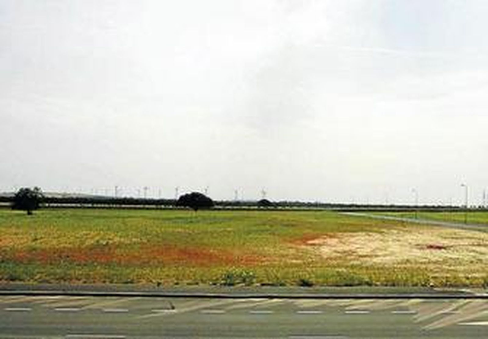 Desde la entrada, se descubre que todos los límites de este polígono son naturales: dos grandes vías pecuarias en su parte lateral, pinares y, al fondo, los enormes molinos del parque de aerogeneradores del Cortijo de Guerra. El medioambiente hace frente a la crisis.