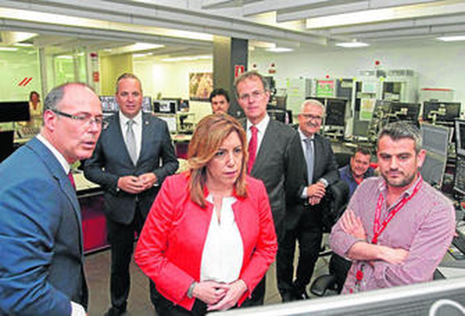 Tras el protocolo, los representantes del gobierno andaluz y del grupo Cepsa visitaron parte de la refinería, con una parada en la nueva sala de control -que entró en servicio el pasado mes de marzo- y la parte alta de la factoría desde la que se divisa la Bahía de Algeciras.