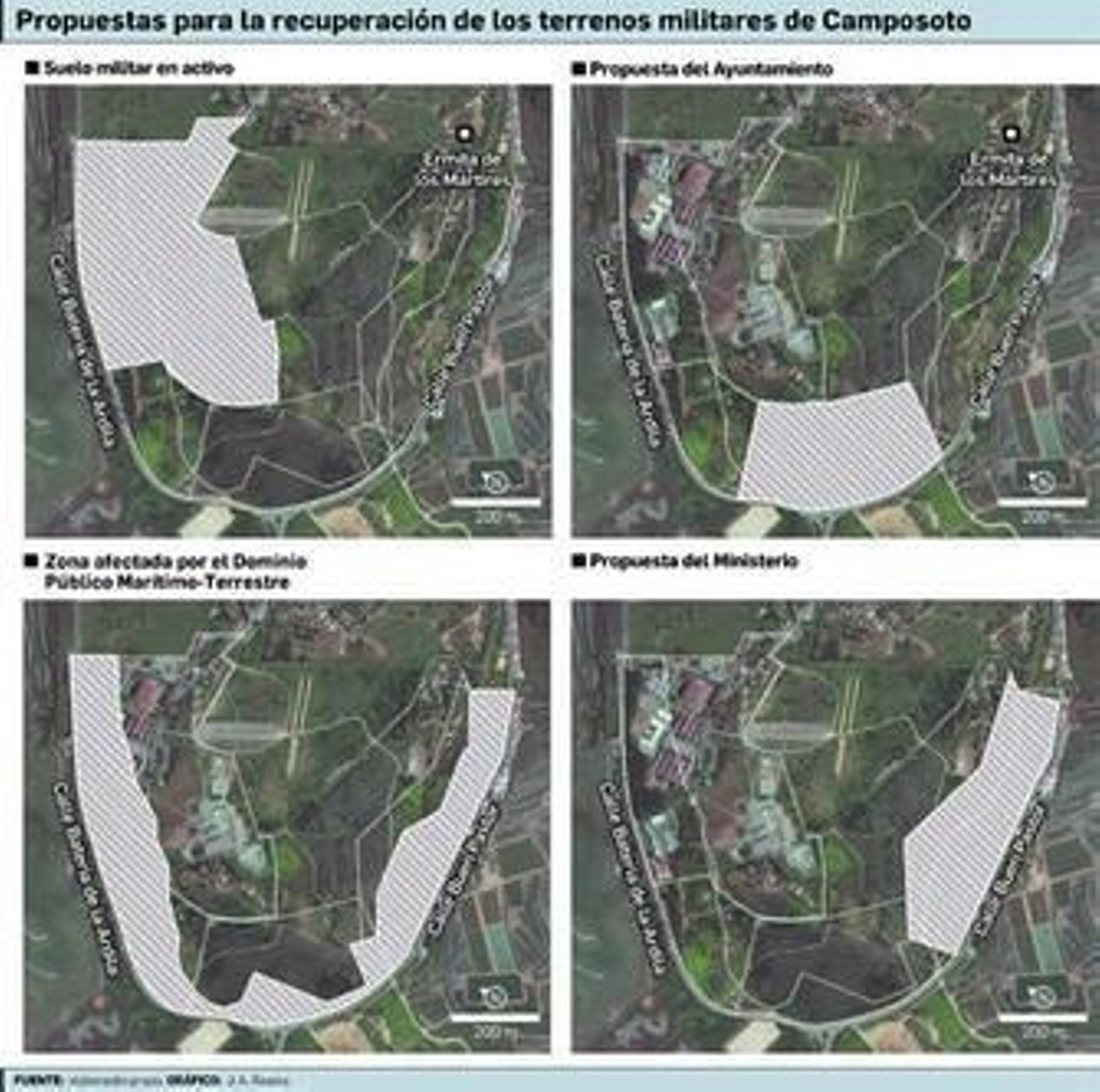El gesto se valora desde el Ayuntamiento.Pero los suelos que de entrada ha propuesto Defensa no coinciden plenamente con las aspiraciones iniciales del gobierno municipal. Por eso se ha puesto sobre la mesa una contraoferta para desafectar exactamente la misma superficie de suelo -17 hectáreas- en la zona más cercana a la playa, que tampoco tiene en la actualidad un uso militar activo.Se trata del área próxima al pozo Alcudia y a la rotonda de las banderas mediante la que se accede a las distintas pistas de Camposoto.