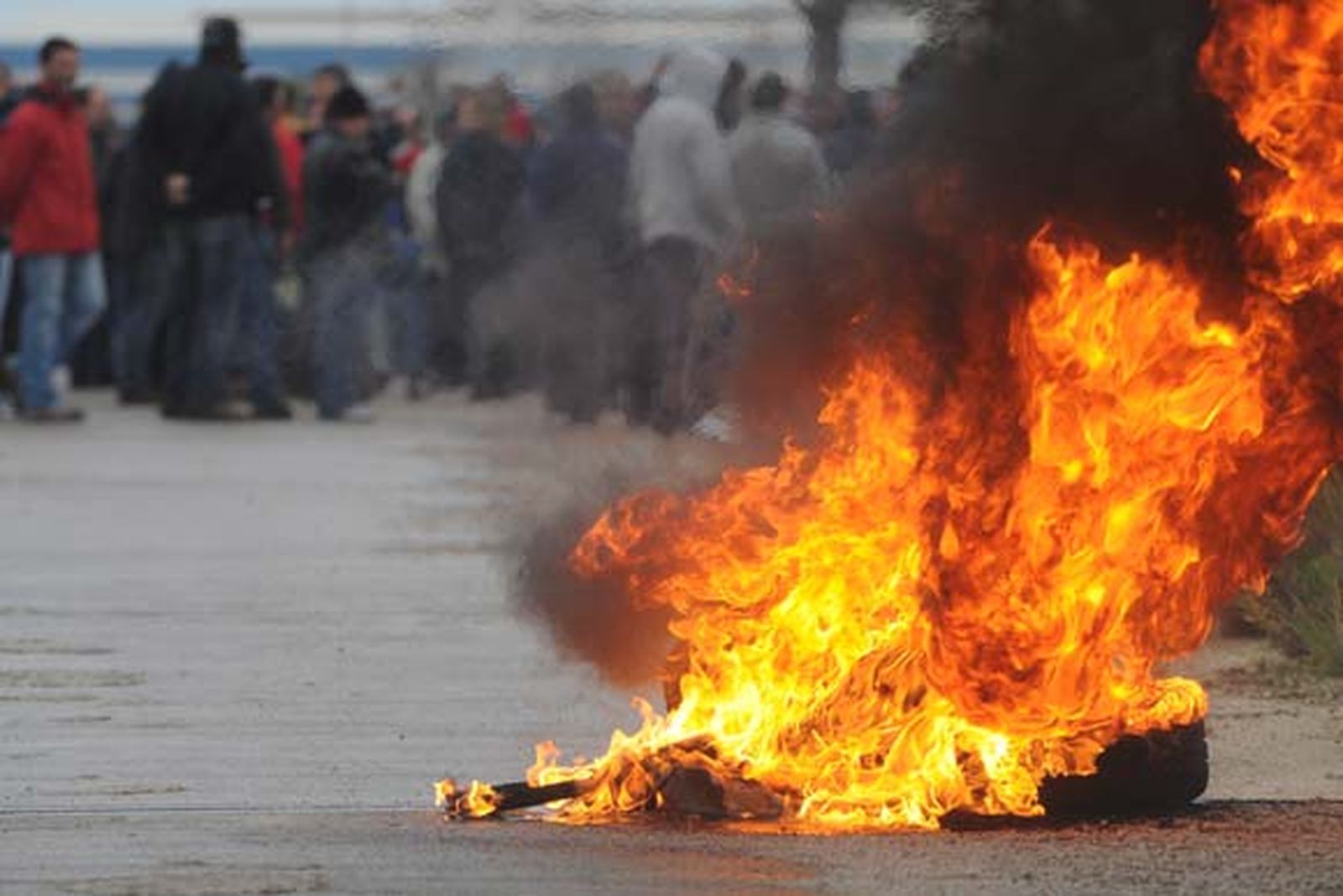 Los trabajadores han prendido fuego a los separadores viales provisionales que hay en la zona, paralizando el tráfico