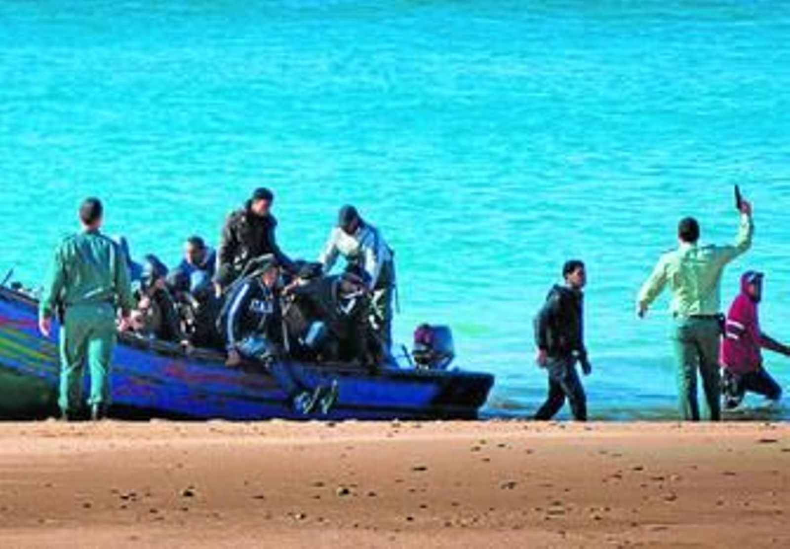La escena fue captada en una fotografía a la llegada de la patera con inmigrantes a Caños de Meca