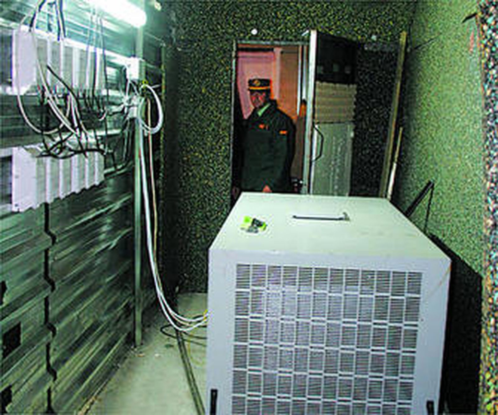Tras la tapadera de las cajas y el muro de aluminio estaba el pastel: nada menos que 12 biombos que se asemejan a cabinas de rayos UVA en cuyo interior la marihuana florece como hongos.