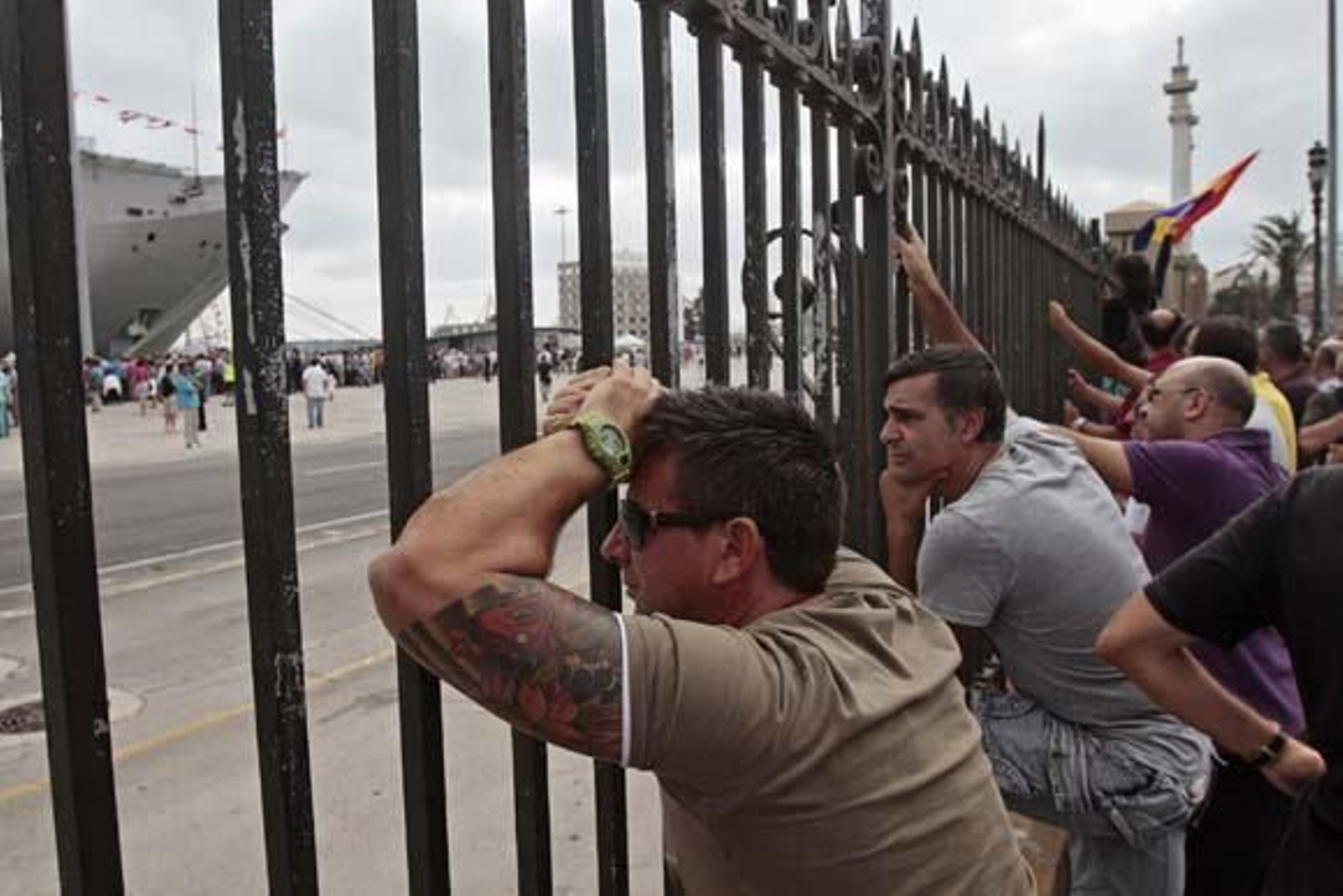 Así, "más de un centenar" de extrabajadores, apoyados por otros colectivos de desempleados, se han situado en los exteriores del recinto portuario lanzando gritos durante todo el acto contra las autoridades allí presentes y reclamando atención sobre su situación. En el momento en el que ha sonado el himno de España, han abucheado y silbado constantemente para hacerse oír, aunque la ceremonia ha continuado con normalidad.
