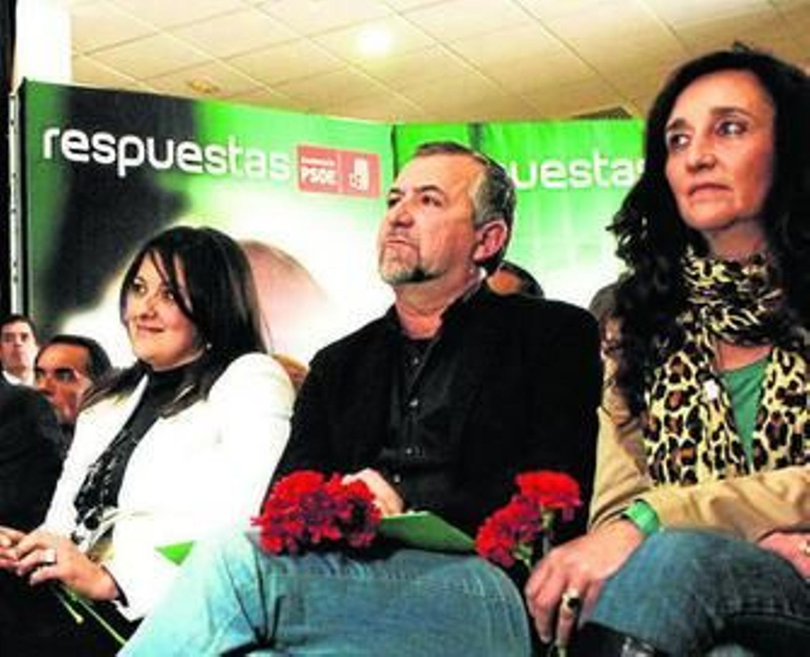 La candidata en Arcos, a la izquierda de Griñán, quien posa junto a la alcaldesa Josefa Caro (dcha.)