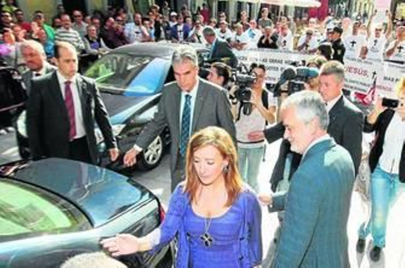 La mediación de Griñán en la crisis interna del PSOE gaditano se llevó a cabo coincidiendo con su primera visita al Ayuntamiento de Jerez desde que hace año y medio fuera elegido presidente de la Junta de Andalucía en sustitución de Manuel Chaves. En torno a un centenar de manifestantes le recibió y le despidió con pitos y abucheos a las puertas del Ayuntamiento jerezano, donde fue recibido por la alcaldesa, Pilar Sánchez, y parte de la Corporación municipal.