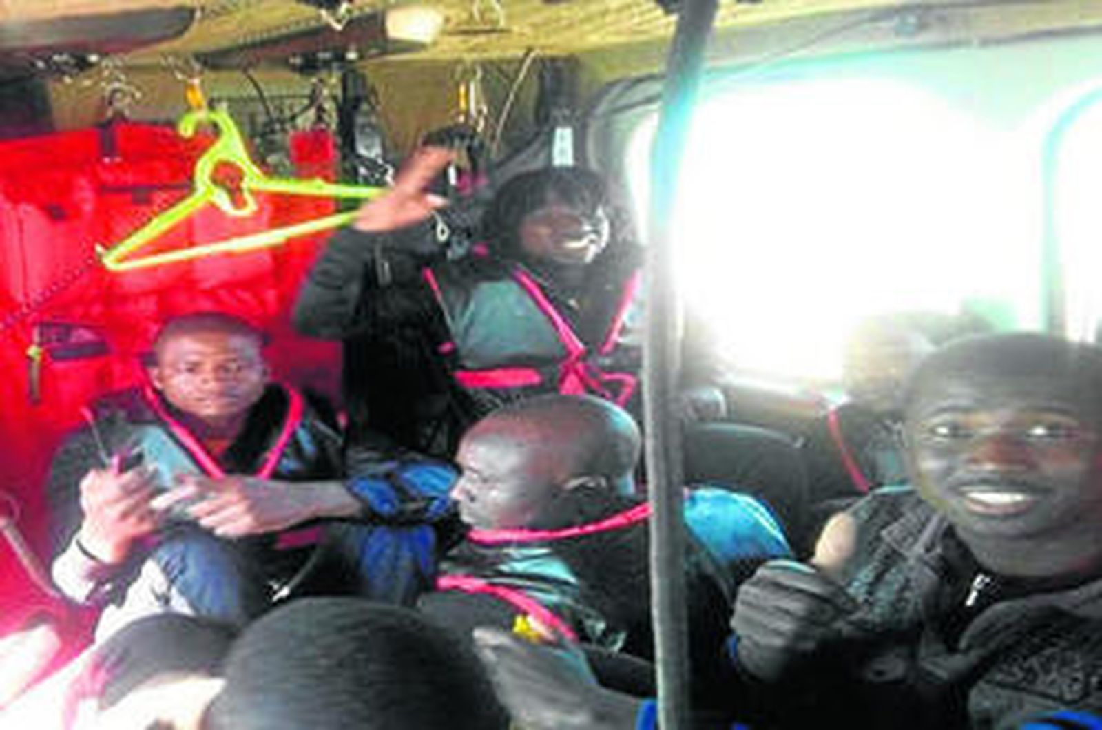 El helicóptero de Salvamento lleva a los tripulantes de la patera hasta Jerez al no poder aterrizar