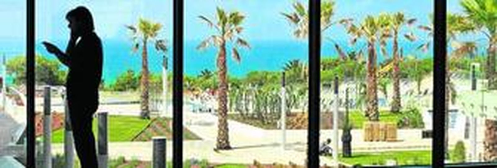 Fernández trabaja con Hipotels desde mediados de los noventa, cuando la firma se expandió en el Novo Sancti Petri. Este encargo era diferente. El edificio es más moderno que los de Chiclana y su característica principal es la luminosidad. Tiene forma de letra 'U' orientada hacia la playa y se distribuye en niveles aprovechando la pendiente de la parcela. De esta forma, la gran mayoría de estancias y zonas comunes tiene vistas al mar, "que es, después de todo, lo que el cliente busca", explica el arquitecto. Todas las habitaciones (320) miran al Atlántico salvo ocho, que dan a la parte trasera del edificio, donde están las pistas deportivas. En la construcción se ha empleado mármol, maderas y enormes cristaleras en todos los rincones. Las barandillas de los balcones son de vidrio. Ayer instalaban las últimas.