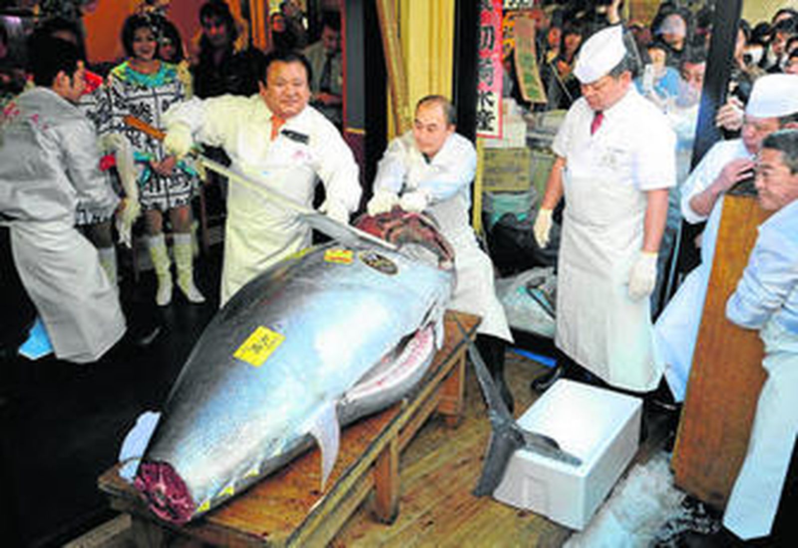 Diego Crespo es de la dinastía de los Crespo, almadraberos barbateños de toda la vida. Su familia tiene la concesión de tres de las cuatro almadrabas de la costa gaditana: Conil, Zahara y Tarifa. Los Crespo fueron los que empezaron a hacer negocios con los japoneses en los 70 y, en cierto modo, los japoneses salvaron la almadraba a la busca del gran cimarrón, el atún rojo que luego en las lonjas de su país se cotizaría a precios astronómicos. El animal tiene tratamiento de obra de arte. Kiyoshi Kimura, dueño de la mayor cadena de restaurantes de sushi de Japón, pagó en 2011 155 millones de yenes por un ejemplar de 222 kilos. 1,3 millones de euros. Jamás se había pagado una cantidad así. Pero es que el atún rojo es venerado en el sol naciente. Los japoneses matan por un pedazo de atún salvaje. Y el de Barbate es muy salvaje.