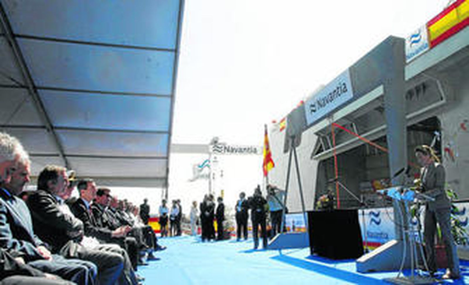 El único atisbo de nuevas relaciones comerciales entre la Armada y Navantia lo hizo la ministra en su discurso previo a la flotadura del barco, que se realizó, como manda la tradición, con una botella de Sangre y Trabajadero. Carme Chacón aseguró que "este segundo Buque de Acción Marítima forma parte del esfuerzo para dotar a la Armada de navíos de última generación y que son construidos en unos astilleros con los que el Gobierno espera continuar su fructífera relación de forma larga y duradera".