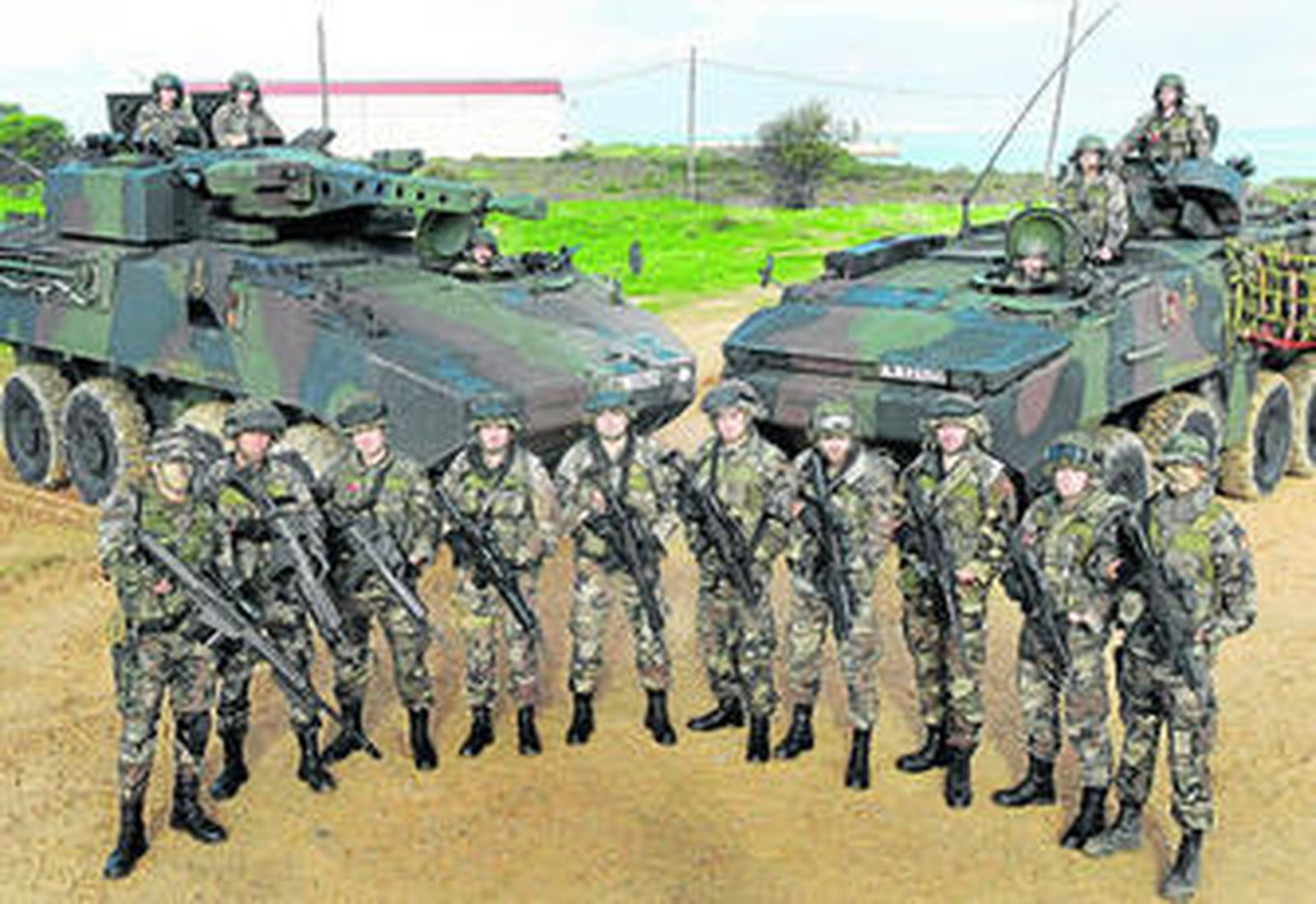 Los blindados se reagrupan. Fito Carreto, redactor gráfico de este medio, sugiere una foto de equipo que muestre toda la panoplia de armas y a los integrantes del destacamento. El brigada Eduardo Gomez Olano, responsable de información pública del TEAR, secunda la propuesta y, gracias a sus buenos oficios y a la gentileza de los infantes, se logra una insólita imagen que refleja la fuerza de la columna operativa.