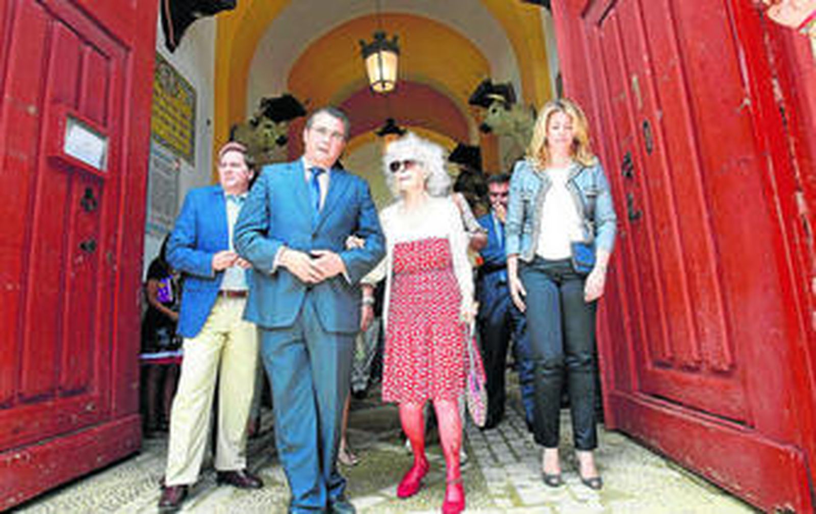 La Puerta 59 de la Real Plaza de Toros de El Puerto solo se abre de par en par en las grandes ocasiones. La última vez que lo hizo fue el 14 de agosto del año pasado para que salieran a hombros los rejoneadores Diego Ventura y Leonardo Hernández tras sendas soberbias faenas. Y ayer se volvió a abrir para recibir a la que dicen que es 16 veces Grande de España. Cayetana Fitz-James Stuart, duquesa de Alba, visitaba en la mañana de ayer El Puerto para mostrar su apoyo a la Red Iberoamericana de Ciudades Taurinas, una iniciativa promovida por el Ayuntamiento portuense para difundir el mundo del toro y abrir un vínculo de comunicación entre las ciudades donde se celebran estos festejos. De hecho, la duquesa firmó ayer su aceptación como embajadora de honor de esta iniciativa.