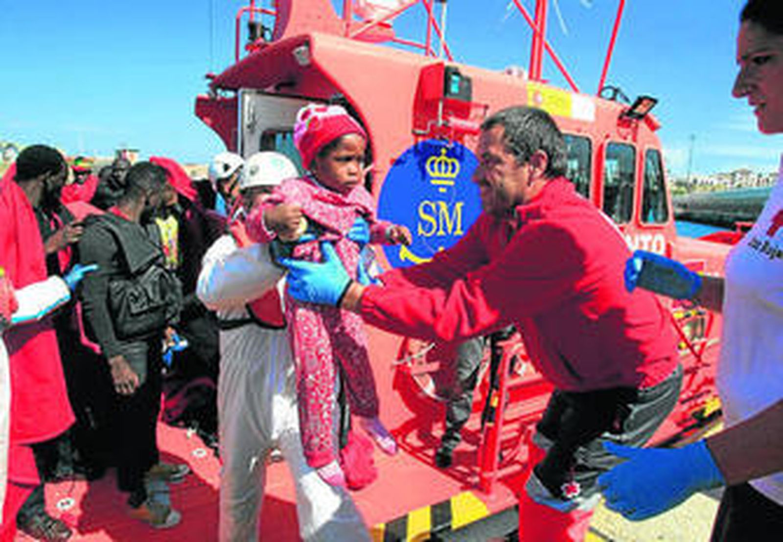 Miembros de Salvamento Marítimo rescataron ayer en aguas del Estrecho a un total de 19 inmigrantes de origen subsahariano, dos de ellos niños y otras dos mujeres, cuando viajaban por aguas del Estrecho intentando alcanzar las costas españolas.