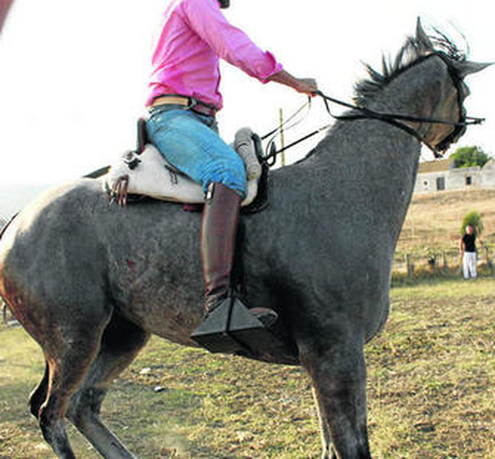 Atardece en La Zarzuela, un pequeño asentamiento a unos pocos kilómetros del enclave turístico de Zahara de los Atunes, y se iluminan unas luces de verbena que coronan la nave en cuyo interior hay una barra de chapa donde expenden bebidas. Un centenar de personas, entre caballistas y lugareños, resiste a una jornada en la que el ron con coca cola ha corrido generosamente. Declina lo que figuraba en los carteles de los bares locales como un concurso de doma para aficionados. Y la luz tibia de las bombillas ilumina a un jinete de 120 kilos que sube a su grupa a otro de similar tonelaje y la yegua se bota hasta que se deshace del gordo que le aplasta los riñones; o a aquel otro borracho que golpea las patas del animal para que se venza y así bajar la montura a su nivel de fardo beodo. Suenan de fondo las risotadas de ginebra. El concurso languidece con torpes trotes de pencos.