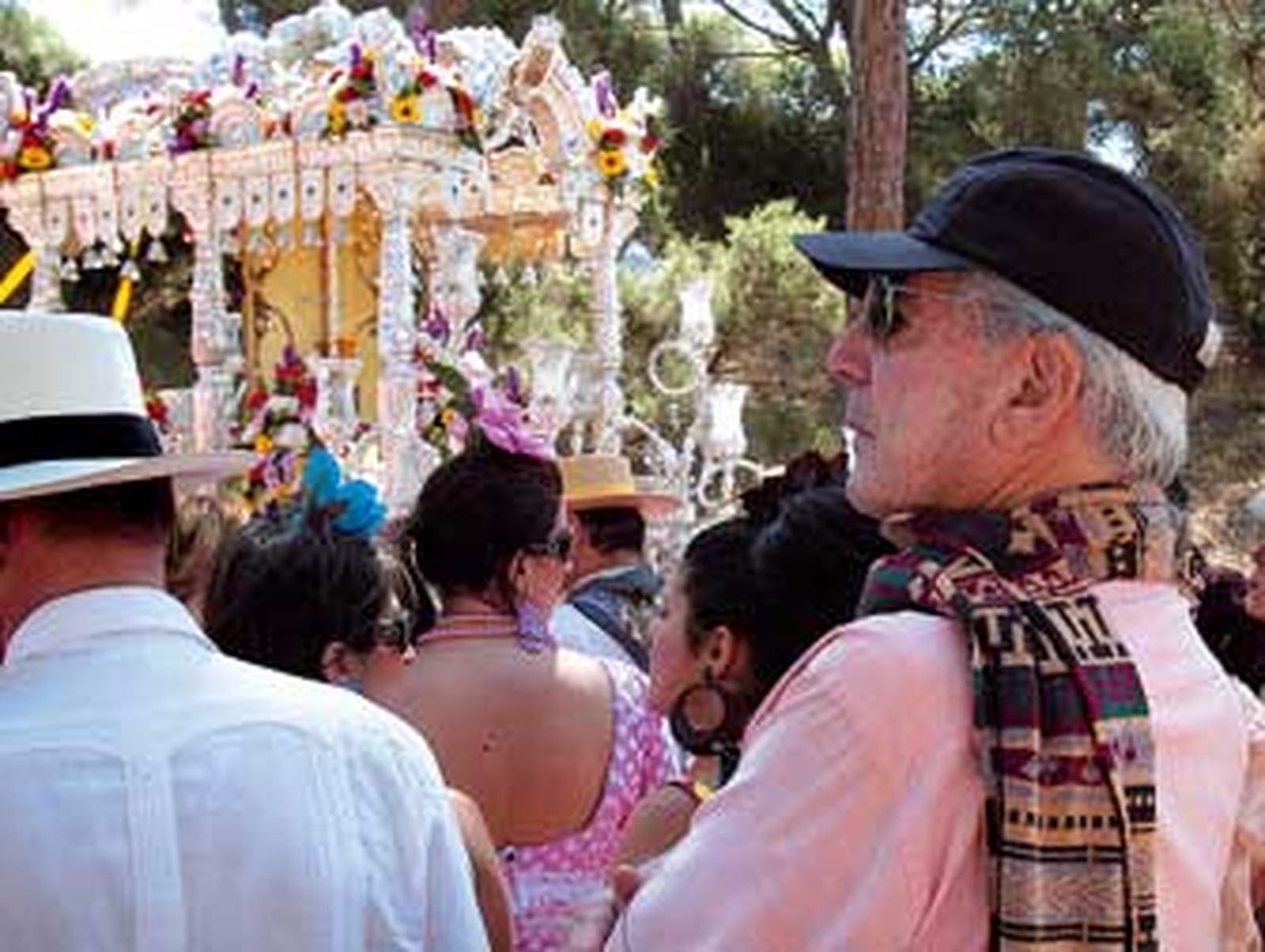 Este invitado de excepción para la hermandad sanluqueña aludió a la romería en marcha como una "experiencia única" que viviría "con mucha ilusión", un "viejo proyecto que, por fin, se ha podido concretar". "Hace muchos años que quería venir, porque había oído y leído mucho, como también había visto documentables, sobre esta famosa peregrinación. Finalmente, este año he tenido la suerte de organizarlo con amigos, así que estoy muy contento de venir a confrontar la realidad con la leyenda y el mito", manifestaba el escritor en pleno tránsito de una orilla a otra. El escritor estará hoy también haciendo el camino con la hermandad sanluqueña.
