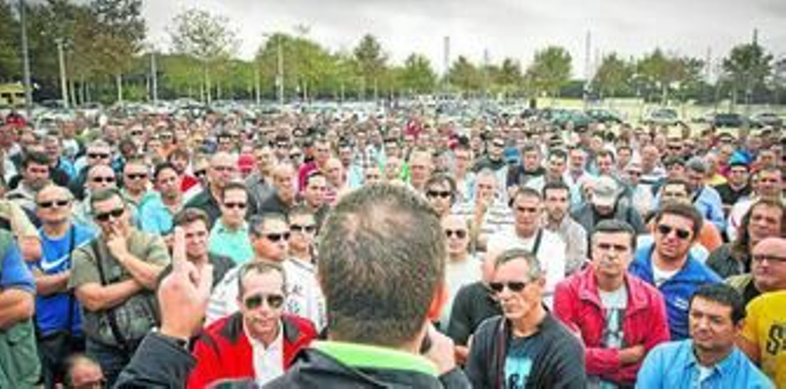 Imagen de archivo de una asamblea de trabajadores en la antigua fábrica de Delphi.