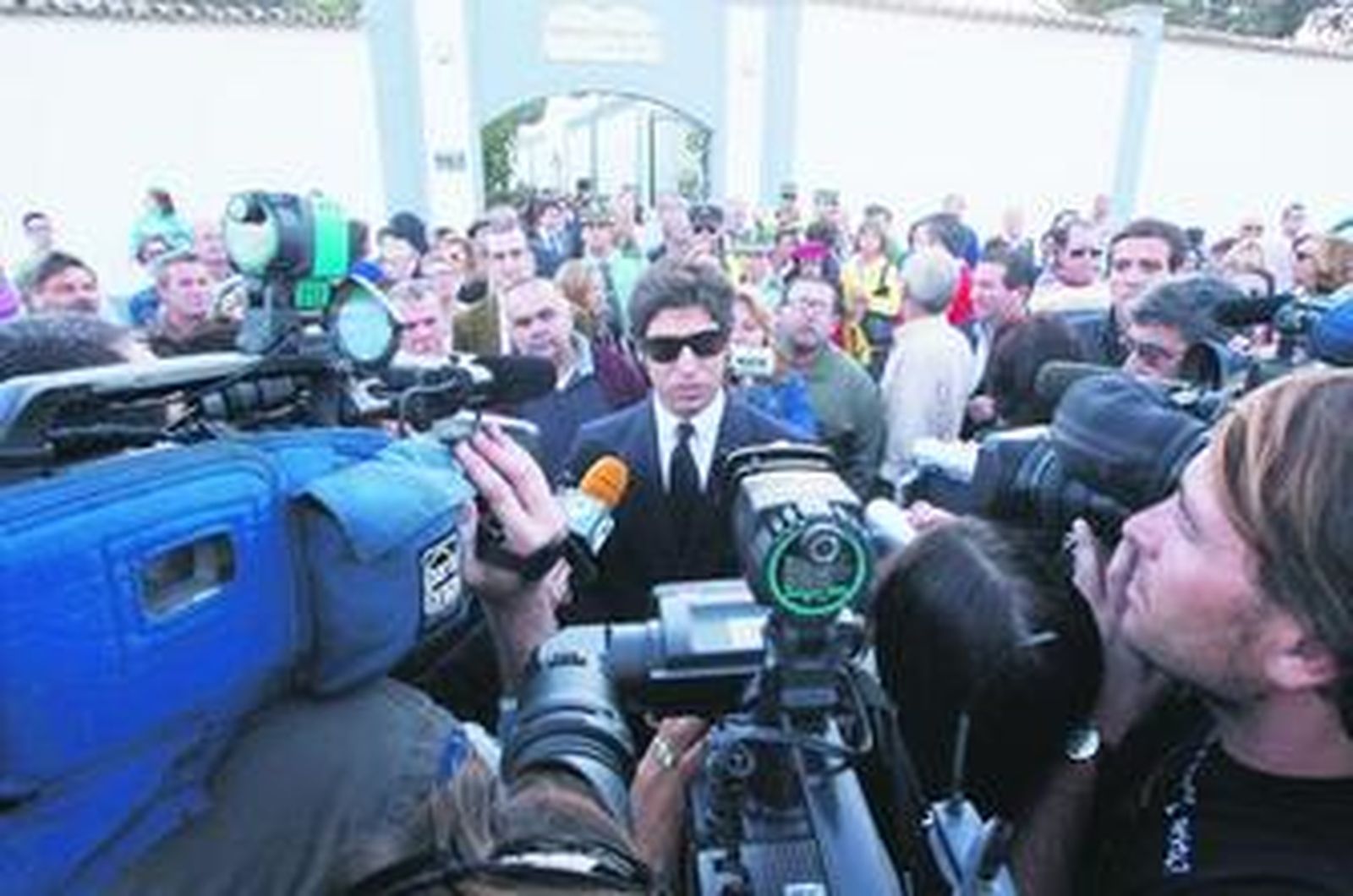Sus hijos Antonio y Teresa Rivera, de riguroso luto, sus nietos Cayetano Rivera Ordóñez y José Antonio Canales Rivera, así como otros rostros conocidos de la tauromaquia como Víctor Janeiro, se pudieron ver entre la nube de fotógrafos y cámaras de televisión que querían sacar "un primer plano" del ataúd mientras era conducido al interior de la parroquia de San Paulino, donde su párroco, José María Quintana Raigadas oficiaba una ceremonia fúnebre ante una iglesia abarrotada.