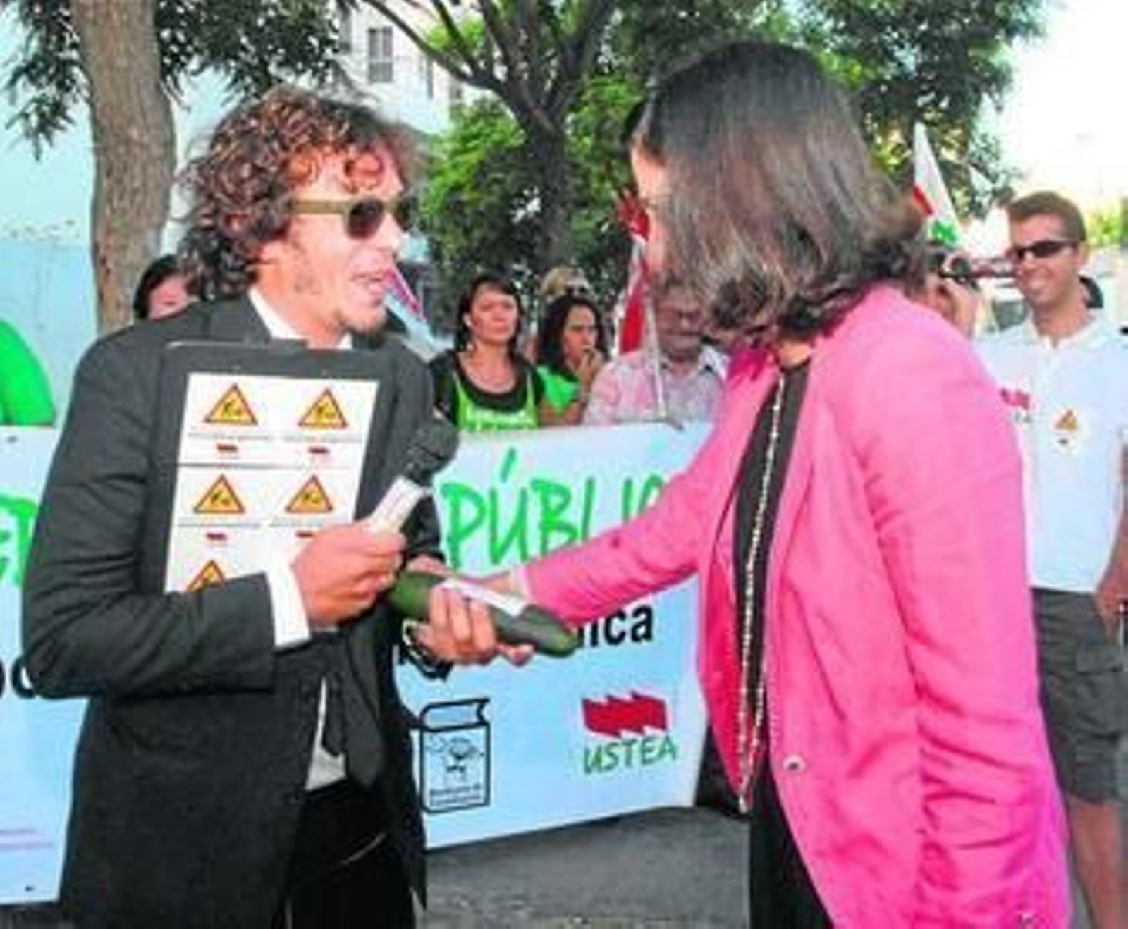 El sindicato Ustea desarrolló ayer, en la puerta del colegio Raimundo Rivero de San Fernando, una acción denominada Pepinada popular contra los recortes, y que consistía en el reparto de pepinos con la leyenda "A la Consejería le importas un pepino". Pero no solo eso. Además del reparto de las hortalizas, un miembro del sindicato ataviado con la indumentaria característica de los reporteros del programa televisivo Caiga quien caiga, abordó a la delegada territorial de Educación nada más llegar al centro educativo con varias preguntas alusivas a los recortes. Cristina Saucedo explicó al representante de Ustea que la Junta de Andalucía ha recurrido el Real Decreto-Ley 14/2012 aprobado por el Gobierno central, y también resaltó que la ideología política del Gobierno de España no es la misma que la del Gobierno andaluz. "La ideología de la derecha apuesta por la escuela privada, y la Junta apuesta por la escuela pública. Puede consultar los datos, que así lo demuestran". Al término del cuestionario, el entrevistador quiso entregarle un pepino, pero la delegada le pidió que se lo guardara mientras inauguraba el curso escolar. "Además, no me sienta bien el pepino. Si me das una lechuga, te la acepto encantada", bromeó la responsable de Educación en Cádiz.