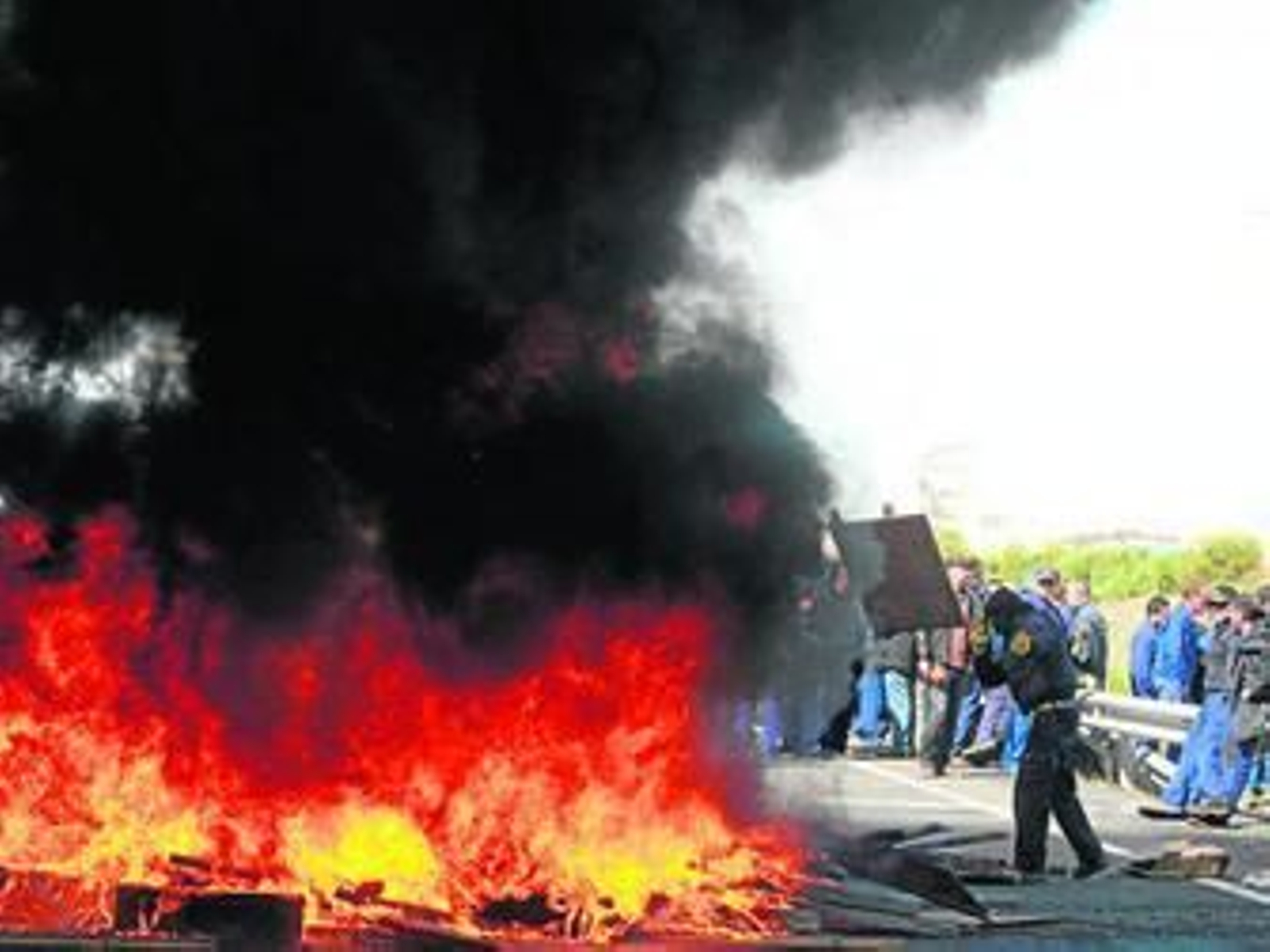 Sobre las 11.15 horas, la plantilla, que se había reunido en asamblea, salió desde la factoría hacia el Puente y con palés y neumáticos encendieron una gran hoguera. La Guardia Civil de Tráfico ya estaba pendiente y cortó la circulación rodada rápidamente. Aunque la protesta no llegó a mayores, el ambiente se calentó unos veinte minutos antes del mediodía. Varias personas intentaron tirar una de las farolas de la carreteras de acceso al Puente, dejándola dañada y destrozaron un par de señales de tráfico. A unos metros, varios furgones de la Policía Nacional, que no llegó a intervenir durante la protesta. Sobre las 12 horas los trabajadores entraban de nuevo en la fábrica.