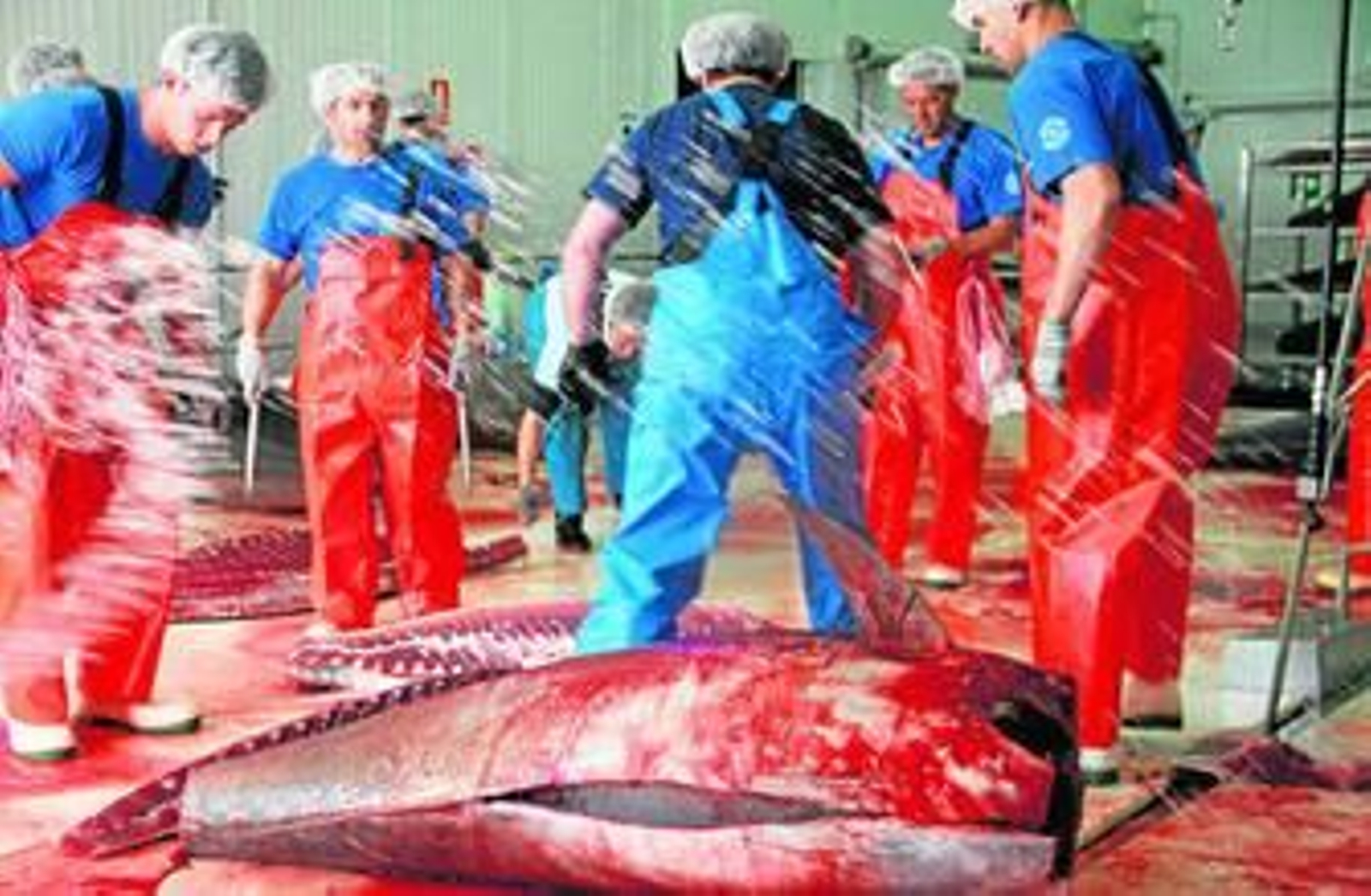 Los primeros pescados se distribuyeron principalmente entre un buque frigorífico japonés anclado en aguas de La Janda y la factoría de Frialba, en el puerto barbateño. En estas instalaciones, de capital local, se despiezan los atunes y se congelan a una temperatura de 60 grados bajo cero, lo que permite que la carne conserve todas sus cualidades.