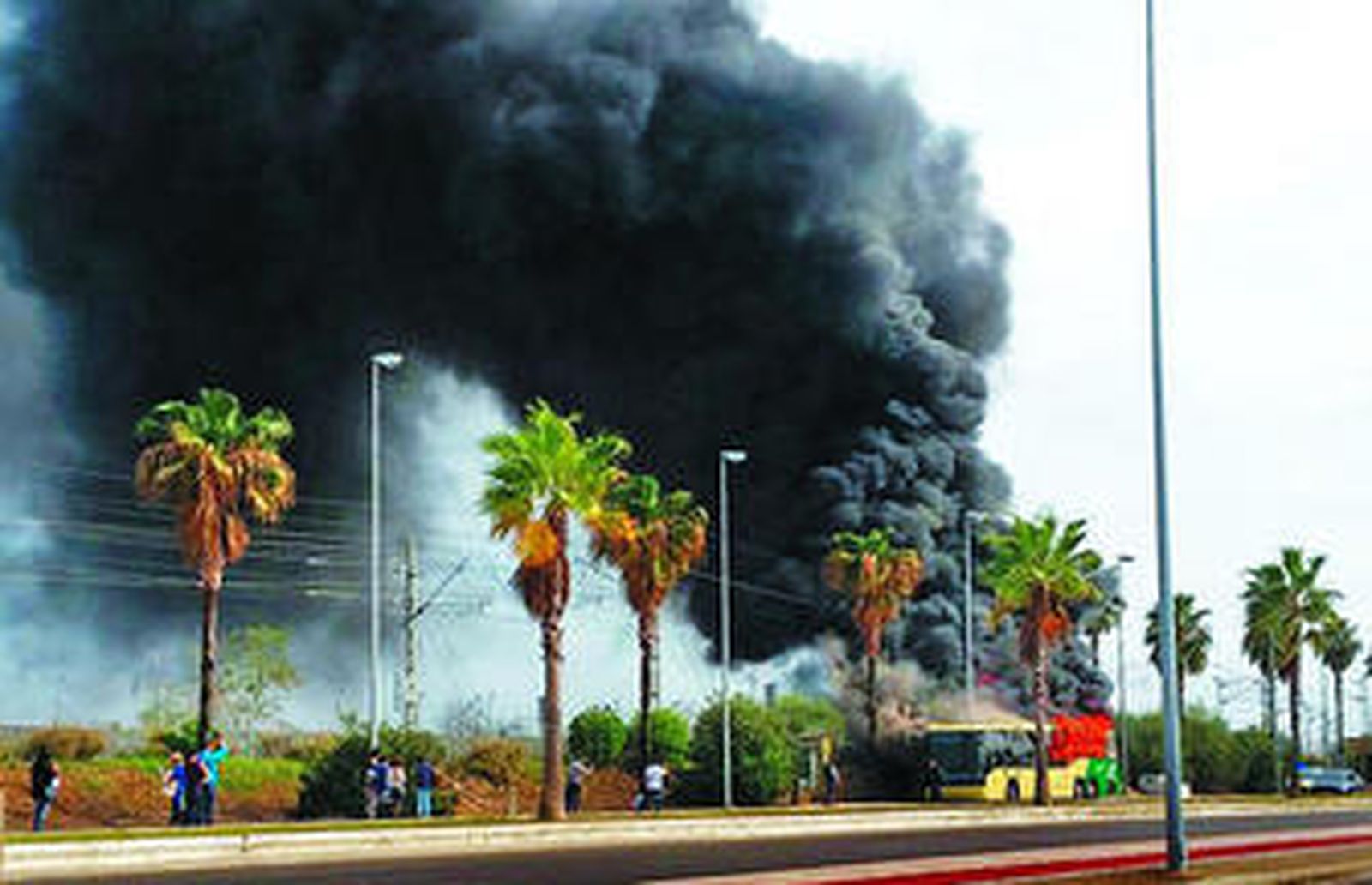 Un autobús con 58 personas en su interior sale ardiendo en Valdelagrana