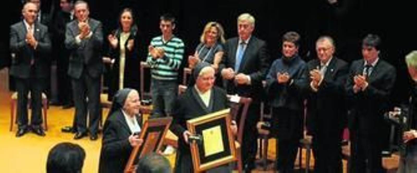 La primera parada en el interior del edificio se realizó de nuevo ante el Libro de Honor de la Diputación. Rodeado de decenas de cámaras y flashes -a los que no están acostumbradas-, sor Trinidad López Vílchez, directora de la casa de Gerasa en Chiclana y sor Nieves Rodríguez González, una de las responsables del comedor de María Arteaga, las Hijas Predilectas de la provincia, firmaban poco antes de que lo hicieran el alcalde isleño y el presidente del Senado, Javier Rojo.