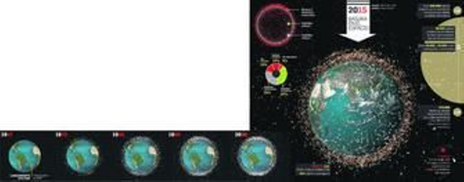 No estamos solos. Alrededor de la tierra se calcula que orbitan unos 700.000 objetos mayores de un centímetro. Solo un siete por ciento son satélites en activo. El resto, un 93 por ciento, son residuos espaciales, basura que gira alrededor del planeta y que, en pocos años, se ha convertido en un grave problema que ha alarmado a toda la comunidad científica internacional. Su dimensión es proporcional a la absoluta dependencia de los satélites que tiene la sociedad actual: teléfonos móviles, GPS, telecomunicaciones...