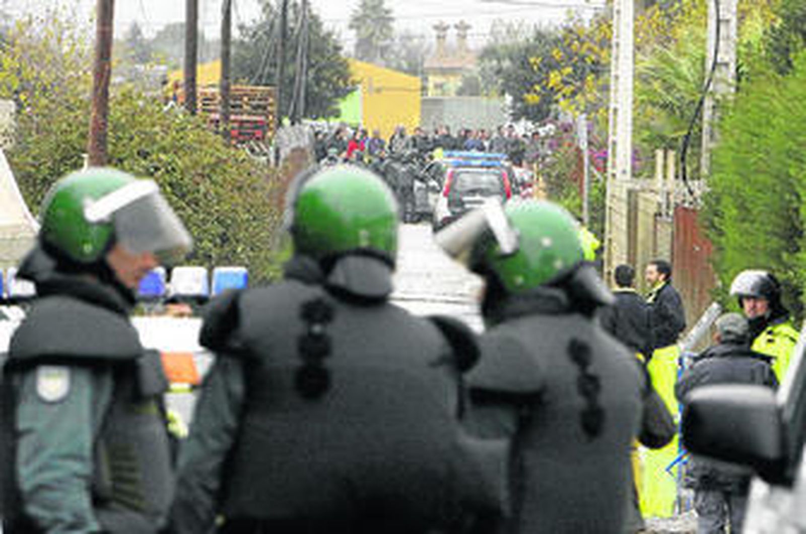 Pero poco antes de la actuación, las fuerzas de seguridad detuvieron a 28 personas por resistencia a la autoridad que, tras prestar declaración, fueron puestos en libertad a lo largo de la jornada de ayer. Tras las detenciones, los agentes también se encontraron con la resistencia del promotor, Antonio Tocino Verdugo, familiares y allegados que se apostaron encima de los tejados de los chalés para que la excavadora no echara abajo las casas. Antonio Tocino esgrimía un cuchillo, pero poco después desistió de su intento de oponerse al derribo, al igual que el resto de familiares que bajaron de los tejados con la ayuda de guardias civiles y bomberos.
