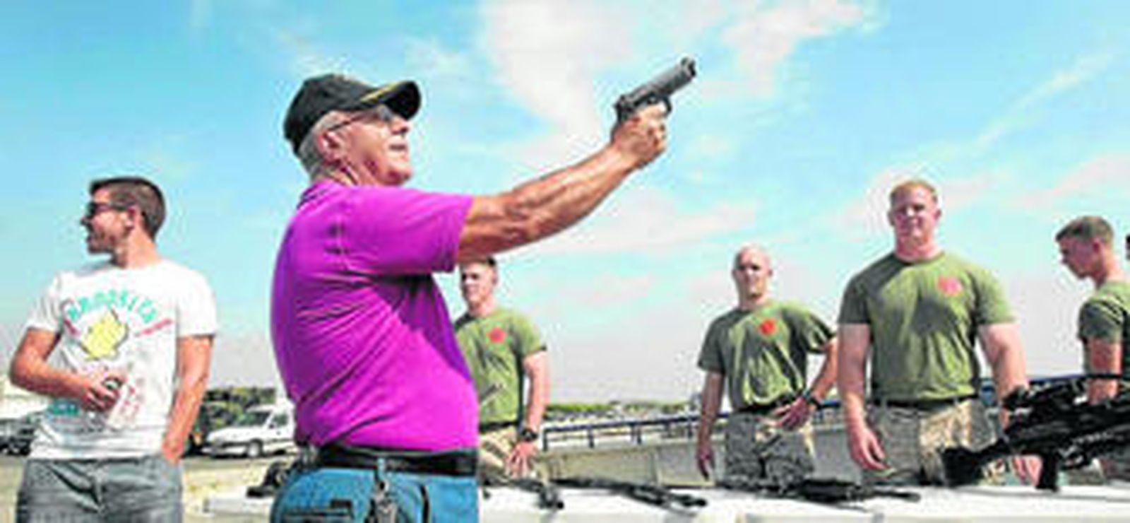 También causa expectación un grupo de marines norteamericanos pertenecientes a la unidad europea del cuerpo de seguridad antiterrorista, la llamada FAST (en inglés, Fleet Antiterrorism Speed Team), que tienen base en Rota. En una mesa muestran una amplia variedad de armamento de diverso calibre desde pistolas hasta rifles de precisión. Manuel Mateos, un jerezano que se casó con una roteña y que trabajó durante 40 años en la Base, aprovecha para fotografiarse con algunas de las más pesadas. Luce orgulloso una gorra del USS Wasp, un portaaviones norteamericano al que le dio servicio cuando era operario en el departamento de transportes del recinto militar. "Esto ya no es lo que era", dice resignado al hablar de la actividad económica que genera el recinto militar. Asegura: "Antes, venían barcos que traían 9.000 americanos que hacía que estuvieras trabajando 11 días seguidos". Él era uno de los encargados de llevar a los soldados desde el barco a la 'gate' (los controles de acceso al recinto) o a las zonas de ocio, restauración y comerciales de las instalaciones como el 'Terminal', el 'Navy Exchange' (un supermercado con productos norteamericanos donde solo puede comprar el personal militar) o los clubes de ocio.