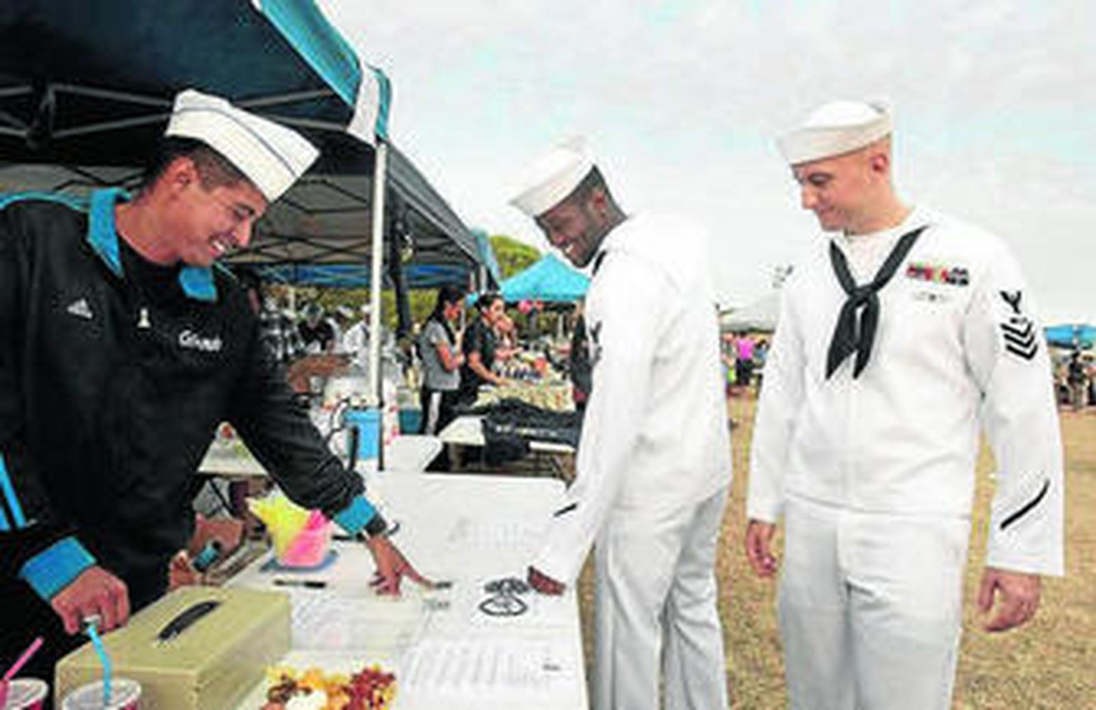 La exposición, que se completa con personal y medios técnicos de Protección Civil de Rota y del cuerpo de bomberos del recinto militar, puede verse hasta media tarde. Toca el turno del acto institucional pero, a su término, se abre una pequeña feria de convivencia con degustaciones de productos de ambos países y que se mantiene abierta hasta bien entrada la noche. Los americanos ofrecen su corta gastronomía centrada en hamburguesas y perritos. Los españoles, por contra, traen vino y algún que otro producto de la tierra. Varias empresas locales y el Ayuntamiento cuentan con espacios para hacer promoción entre la población norteamericana y hay actuaciones de grupos locales.