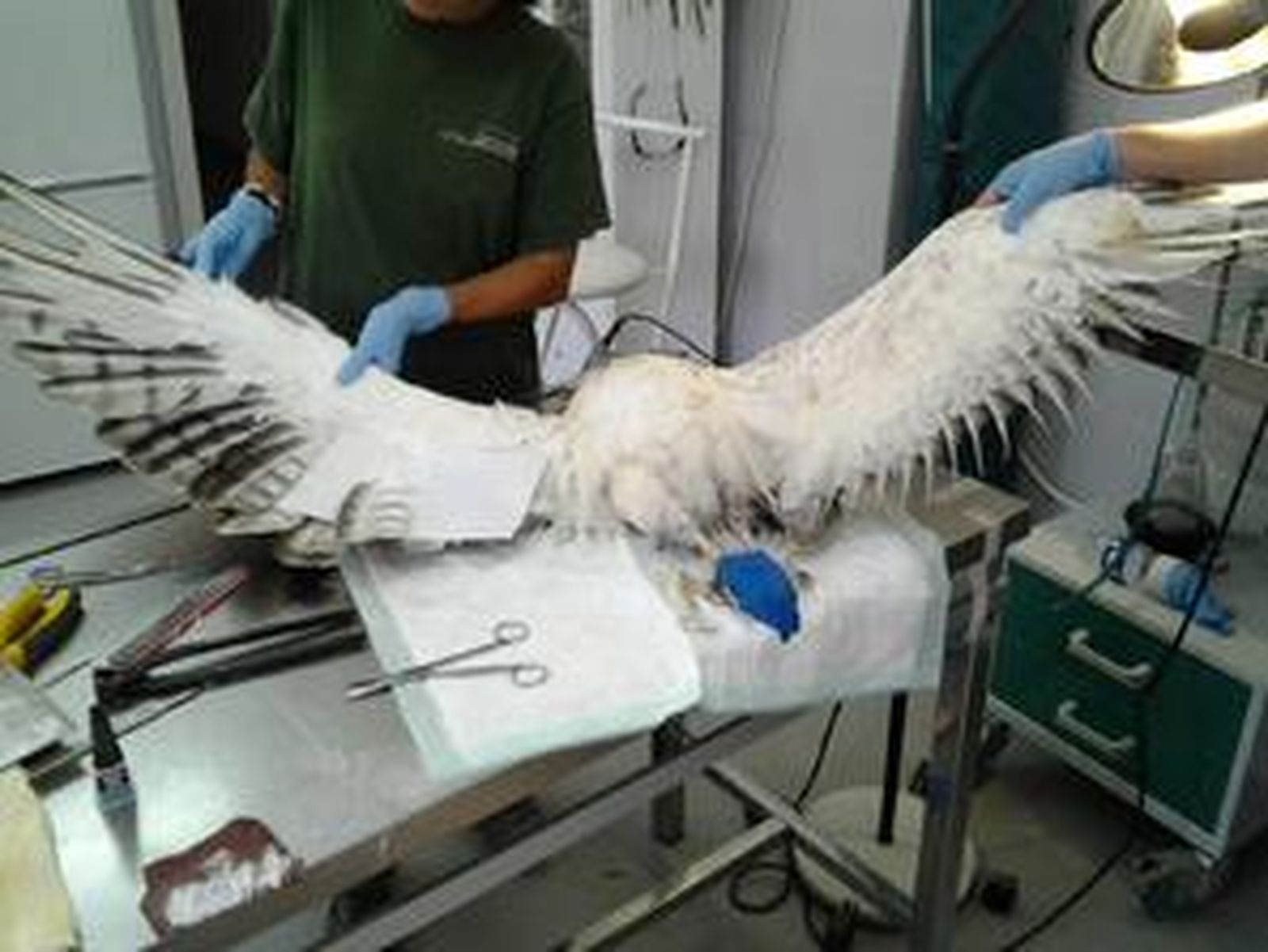 Los técnicos del Centro de Recuperación de Especies Amenazadas (CREA) Dunas de San Antón de la Consejería de Medio Ambiente y Ordenación del Territorio han logrado recuperar un ejemplar de Águila culebrera (Circaetus gallicus) que había sufrido una grave electrocución por contacto con un tendido eléctrico. El animal fue sometido a una operación de más de cuatro horas durante la que se le transplantaron todas las plumas de ambas alas y cola utilizando varillas de fibra de vidrio, un material ligero y fácil de trabajar, como nexo de unión entre las plumas dañadas y las nuevas.