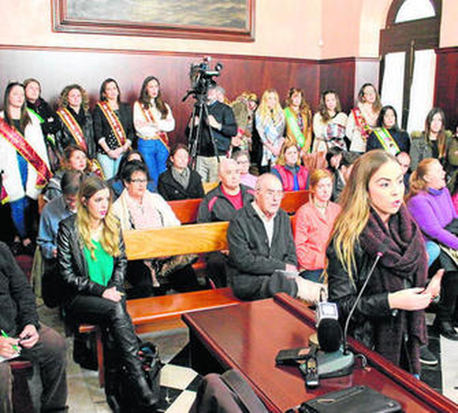 La respuesta no se hizo esperar y ayer las damas de la feria (piñoneras en carnaval), acompañadas de un nutrido grupo de mujeres que han sido damas a lo largo de la historia, acudieron al pleno para mostrar su disconformidad.