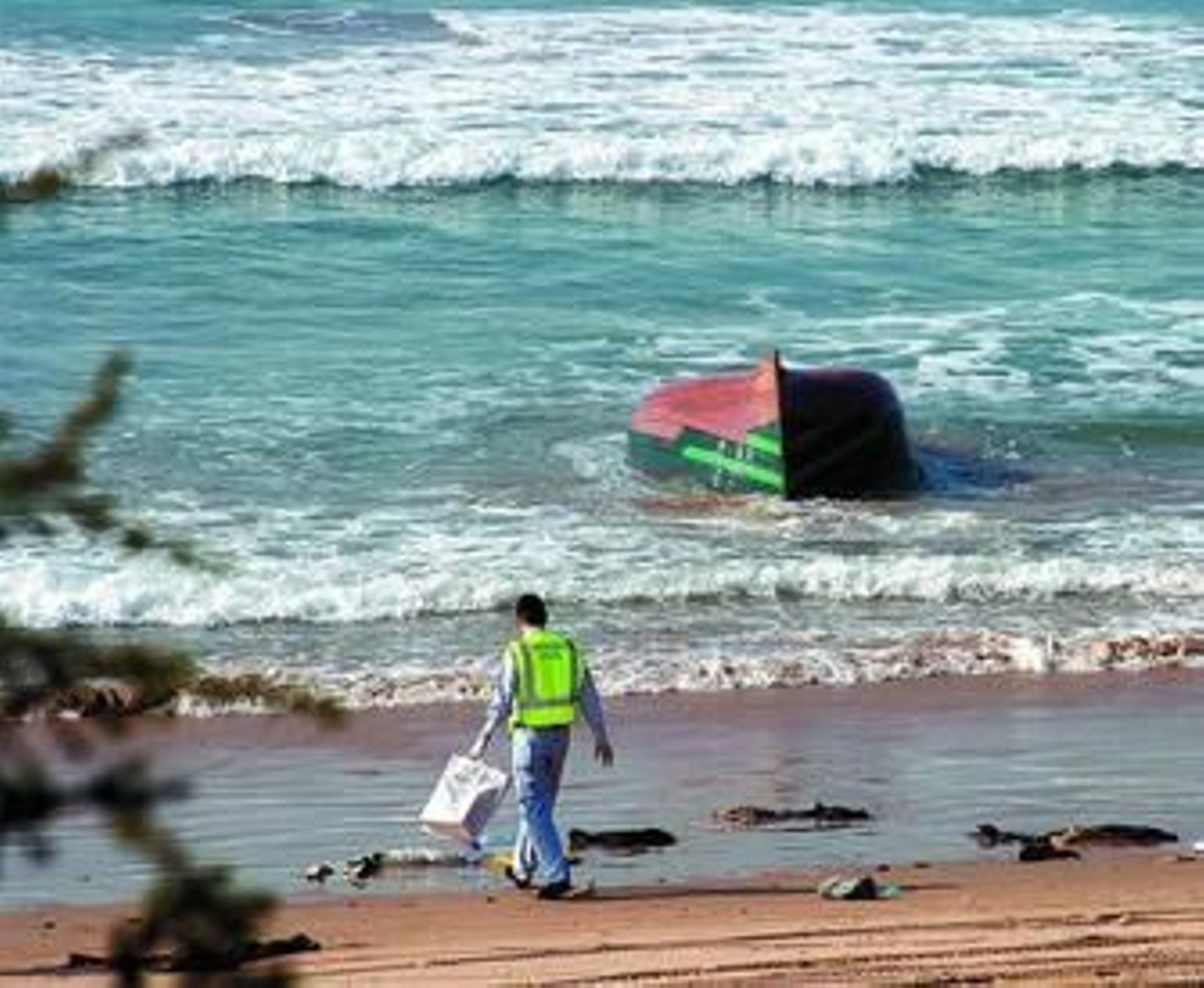 "Ya por la mañana del martes vimos dos pesqueros pequeños y pensamos que la costa no quedaba lejos. Nos saludaron desde uno de ellos. Volvió la alegría entre nosotros. Por fin divisamos la playa y volvimos a sentirnos contentos. Cuando nos encontrábamos a escasos 300 ó 200 metros de la orilla, empezaron a golpearnos las olas. El patrón sólo miraba la playa. De repente, una ola enorme nos sorprendió por detrás. Alguien gritó ¡cuidado!. El patrón se volvió. La vio e intentó virar para emproarla. Pero el motor ya no respondía. La patera quedó de lado y la ola la volcó. Los pocos que sabíamos nadar intentamos ayudar a los demás. Algunos se agarraron a los bidones de gasoil vacíos, a bolsas y mochilas precintadas. Otros pudieron alcanzar la playa. Unos extranjeros nos ayudaron. Y hubo un hombre joven que gracias al único chaleco salvavidas que había en la patera, consiguió sacar del agua a cuatro. Luego, uno de los turistas hizo una llamada. Mi compañero y yo salimos corriendo. La Guardia Civil debía estar ya cerca".