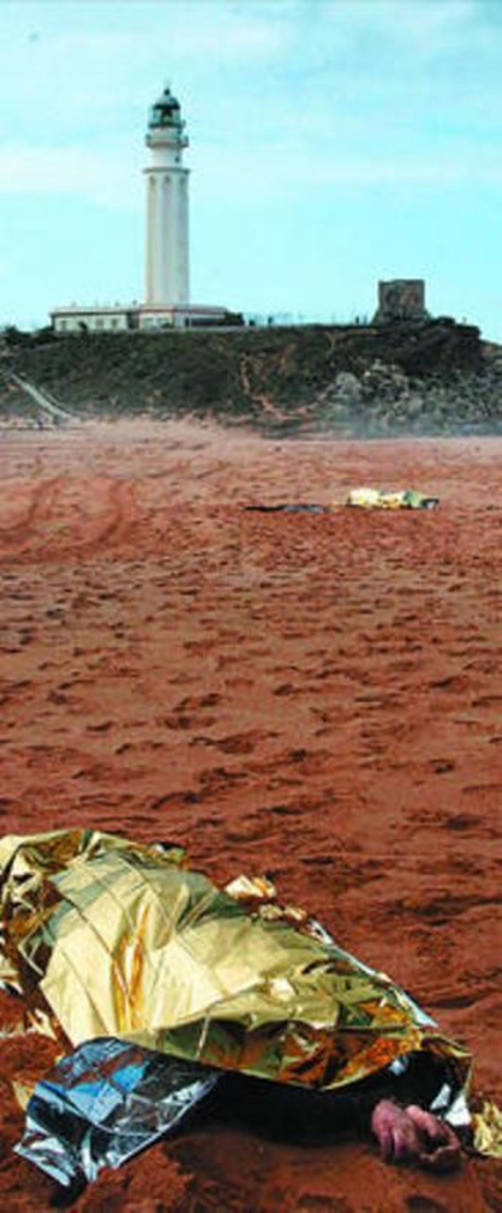 "Me he encontrado una linterna ¿Me la puedo llevar?". Playa de Las Plumas, más conocida como de La Aceitera, en Barbate, al pie de Cabo Trafalgar. Veintiocho de junio. Casi mediodía. Un jinete a lomos de una yegua torda pregunta al hombre de la libreta y la mochila. Posiblemente deduce, por error, que es policía. Se trata de una herramienta de metal malo, marca Tiger head, de inequívoca fabricación china. Tres euros lo más en cualquier todo a cien. La linterna forma parte del rastro humano de ropas ajadas, zapatos desparejados y paquetes de enseres cuidadosamente envueltos en negras bolsas de basura que dejó la penúltima tragedia de la inmigración clandestina en el litoral de la Janda. Posiblemente sirvió para proporcionar un hilo de luz en medio de la mar oscura a algunos de los supervivientes del naufragio de una patera que ni siquiera merecía ese nombre. O quizá también alumbró a alguna de las víctimas mortales que se cobró. Como las cuatro personas que yacen cerca del faro de Cabo Trafalgar cubiertas por mantas térmicas en las fotografías tomadas por este periódico antes de las nueve de la mañana de ayer, tan sólo pocas horas después del suceso.