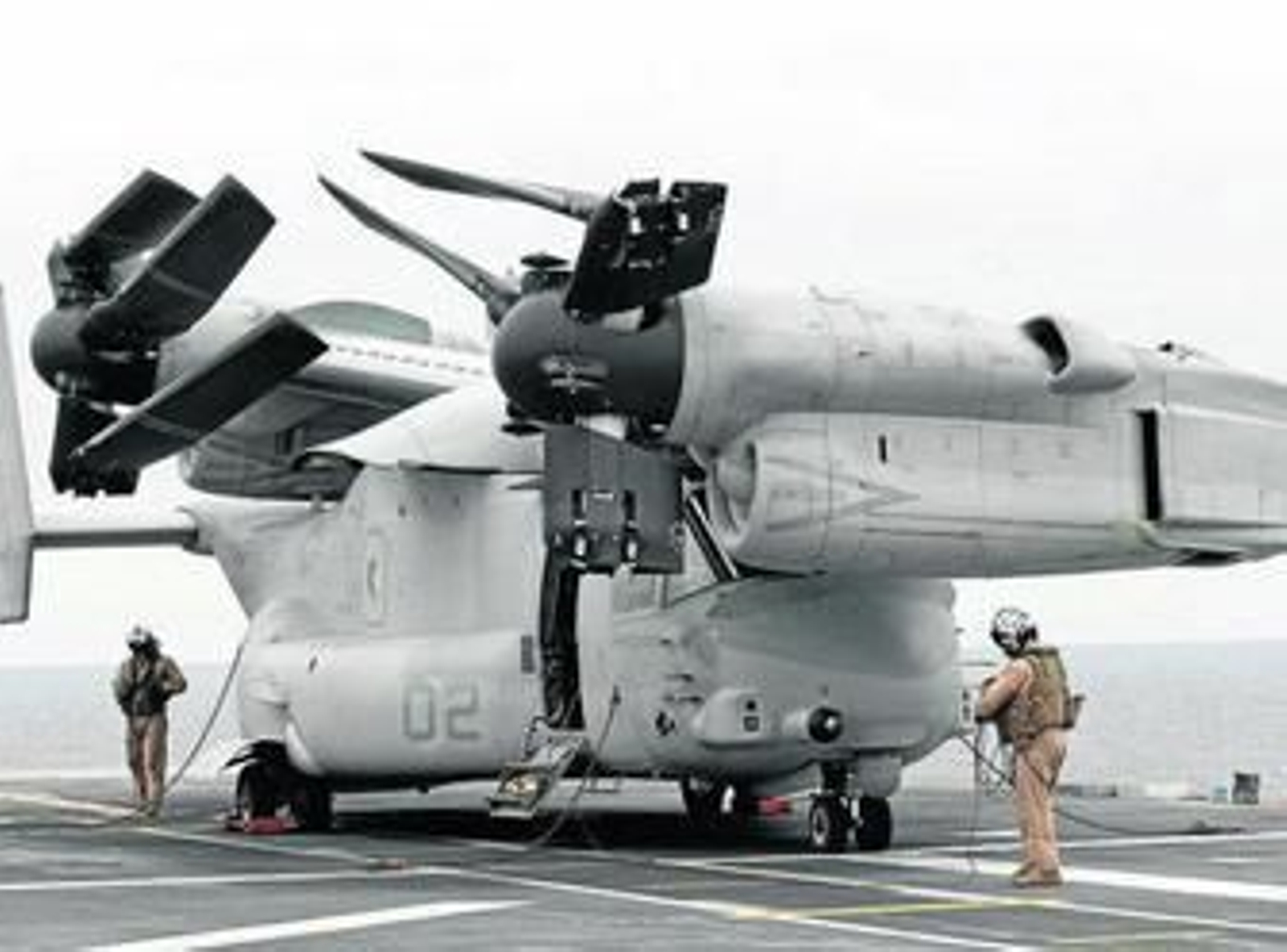 El halieto de los marines estadounidenses aparece antes de diez minutos. Viene en vuelo directo desde Morón de la Frontera (Sevilla), donde se halla destacado junto a otros once convertiplanos. Su cometido es brindar transporte aéreo a los infantes de marina del Grupo de Respuesta Especial a Crisis (SP-MAGTF, por sus siglas en inglés), el contingente militar norteamericano acantonado en dicha base española, y cuyo área de operaciones abarca todo el Mediterráneo y el continente africano hasta su franja ecuatorial.