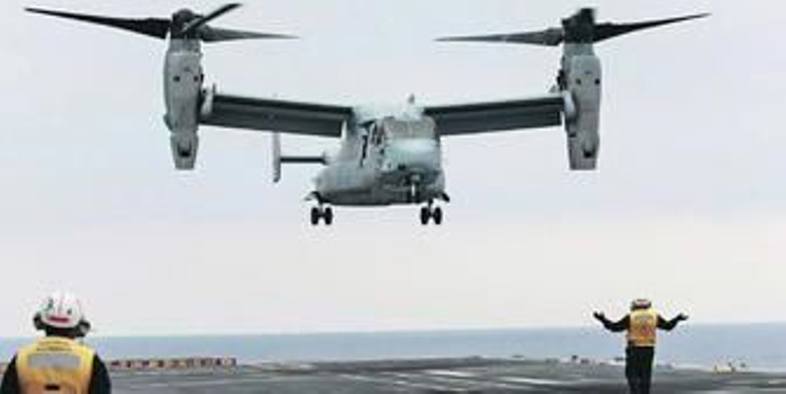 Es una maniobra sumamente arriesgada. De hecho, tiene más peligro que Esperanza Aguirre cerca de una moto. Sobre todo , si esa aeronave es un enorme convertiplano M-22 Halieto (Osprey) del Cuerpo de Marines de los Estados Unidos.