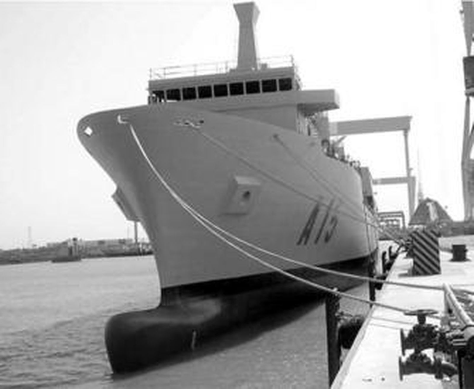 Desde primera hora de la mañana del sábado, el Buque de Aprovisionamiento en Combate, conocido como BAC, reposa en el muelle del astillero de Navantia en Puerto Real, antes de que mañana lunes, a las 12 del mediodía, comience la ceremonia de puesta a flote.
