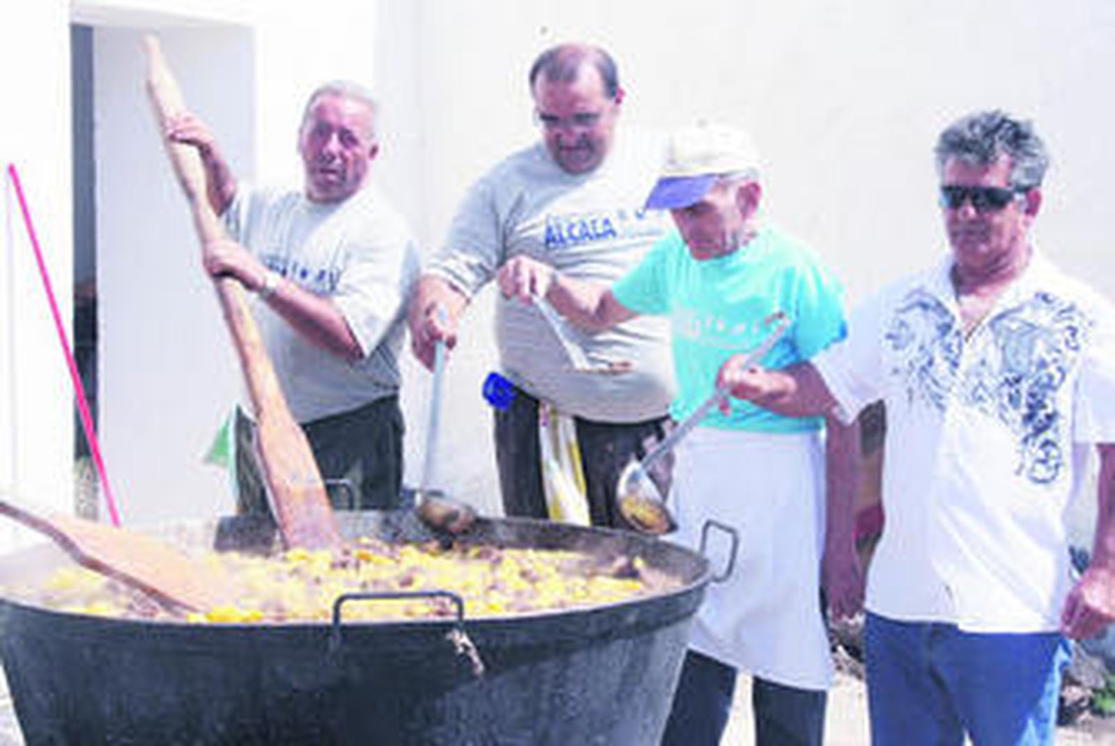 El olor de la preparación de esta comida se entremezclaba con los olores de los platos que se estaban preparando en los 19 cuartos que rodean el patio central del santuario, y que, como cada año, se alquilaron para dar cobijo a colectivos y particulares que pujan por el privilegio. En esta ocasión la crisis económica no ha afectado a esta tradicional puja, ya que han sido varias las familias que se han quedado fuera, según destacó el hermano mayor, Antonio Mancilla.
