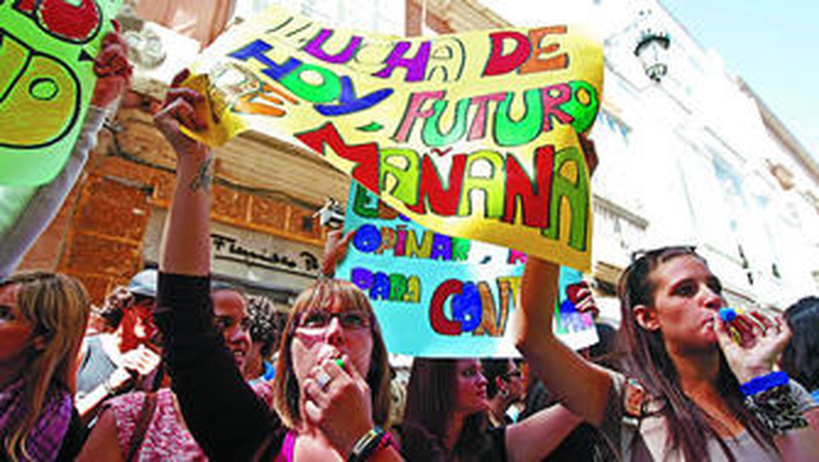 "Hola. Aquí nos vemos. Defendiendo lo nuestro, ¿no?". "Sí, no nos queda otra... Pero es fundamental la unión de todos, incluidos los rectores. Como alguno quiera hacer la guerra por su cuenta o salvar sus propios muebles, va a ser complicado". Esta reflexión sirvió de saludo a dos profesores de la Universidad de Cádiz. Ellos fueron dos de los centenares de personas que ayer, un día marcado por la huelga general en el sector de la enseñanza pública, se congregaron frente a la sede del Rectorado, en la calle Ancha, para protestar por los recortes en educación.
