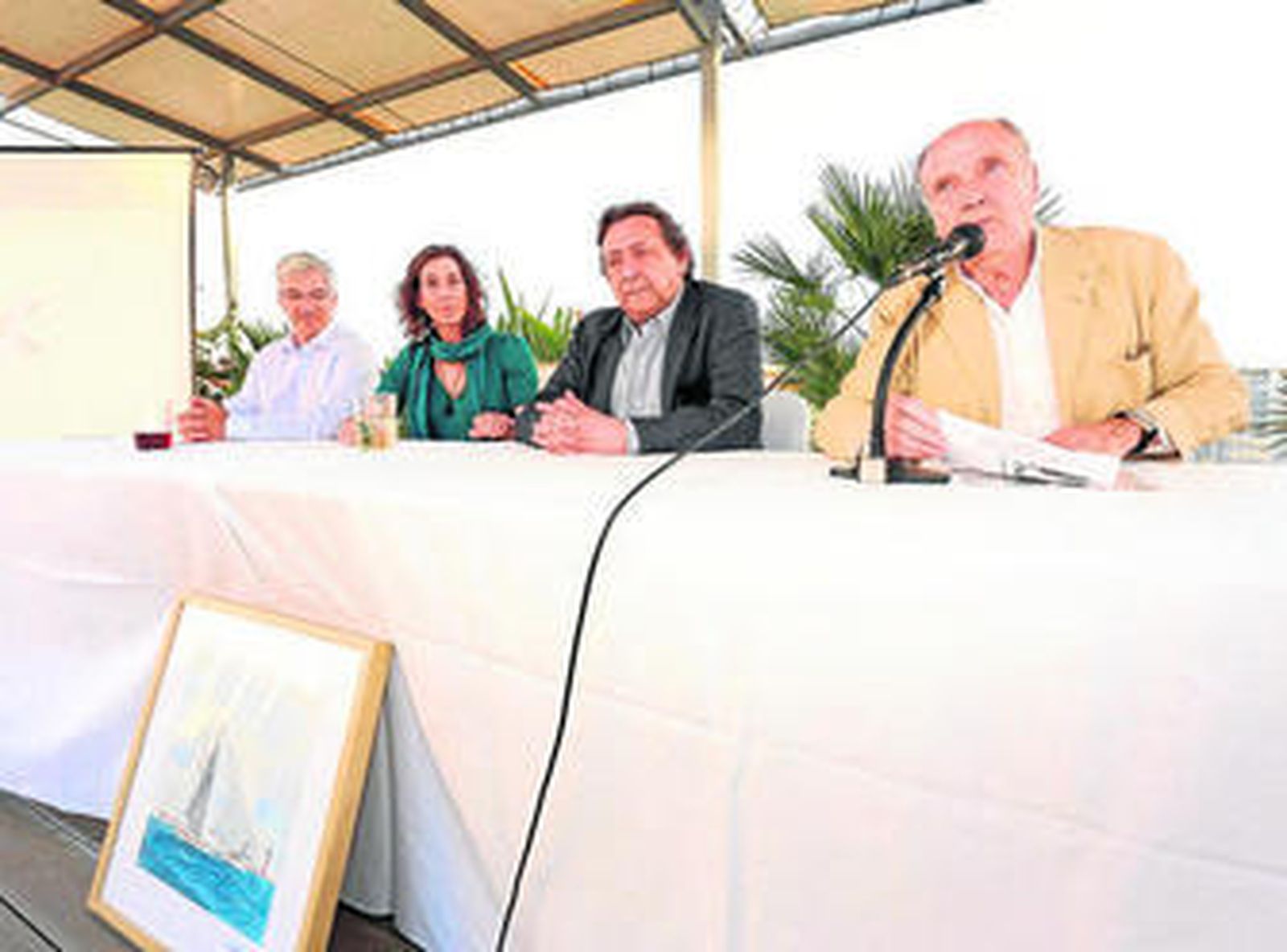 La terraza del hotel Puerto Sherry, en El Puerto de Santa María, fue ayer el escenario escogido por la asociación creada para la restauración del velero Norte V para su presentación en sociedad. Para la ocasión contaron con un padrino de lujo, el escritor Alfonso Ussía, a cuya familia pertenece el velero clásico desde hace años.